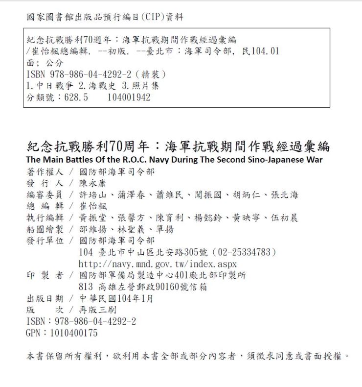 紀念抗戰勝利70週年─海軍抗戰期間作戰經過彙編 |