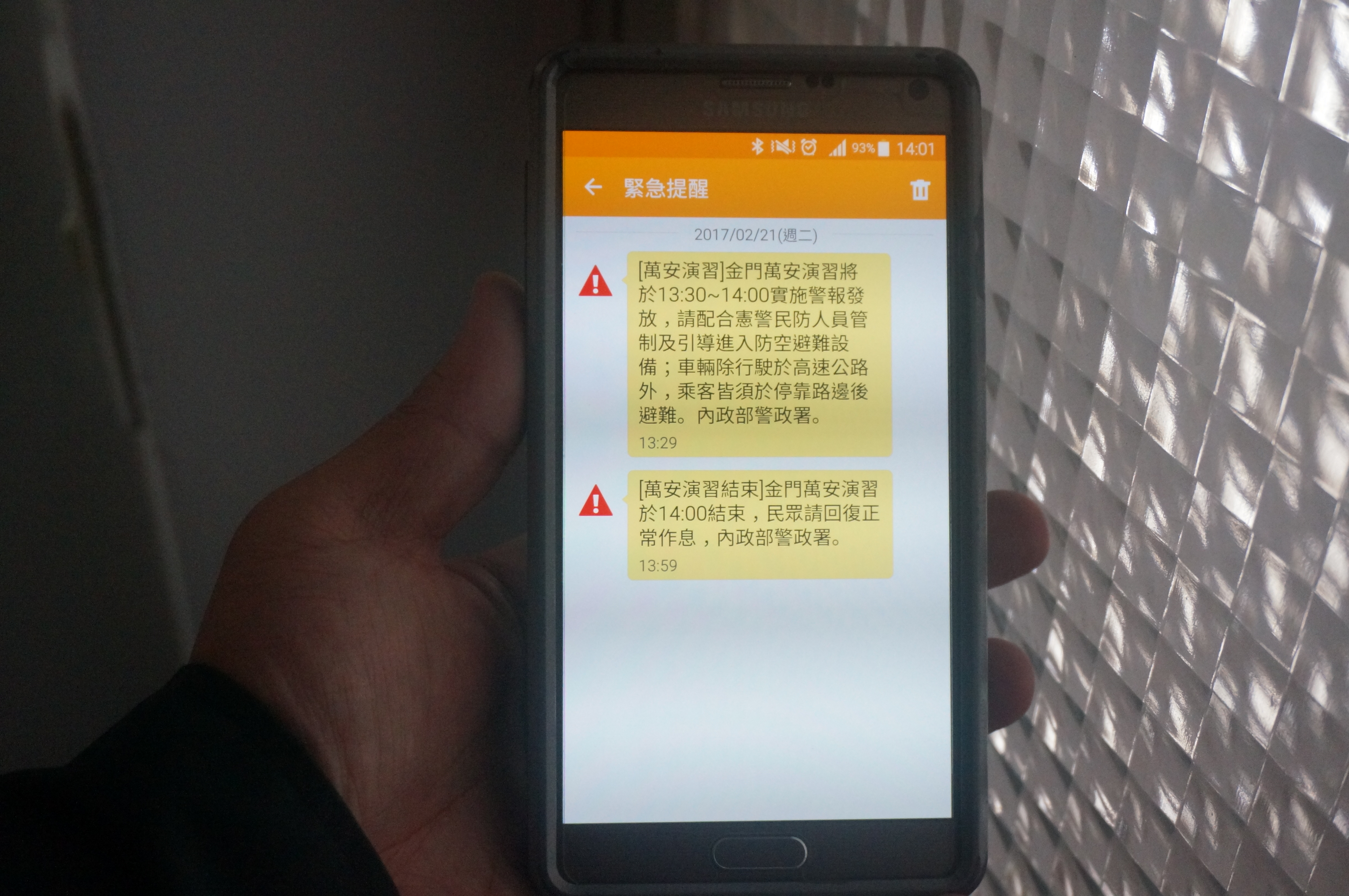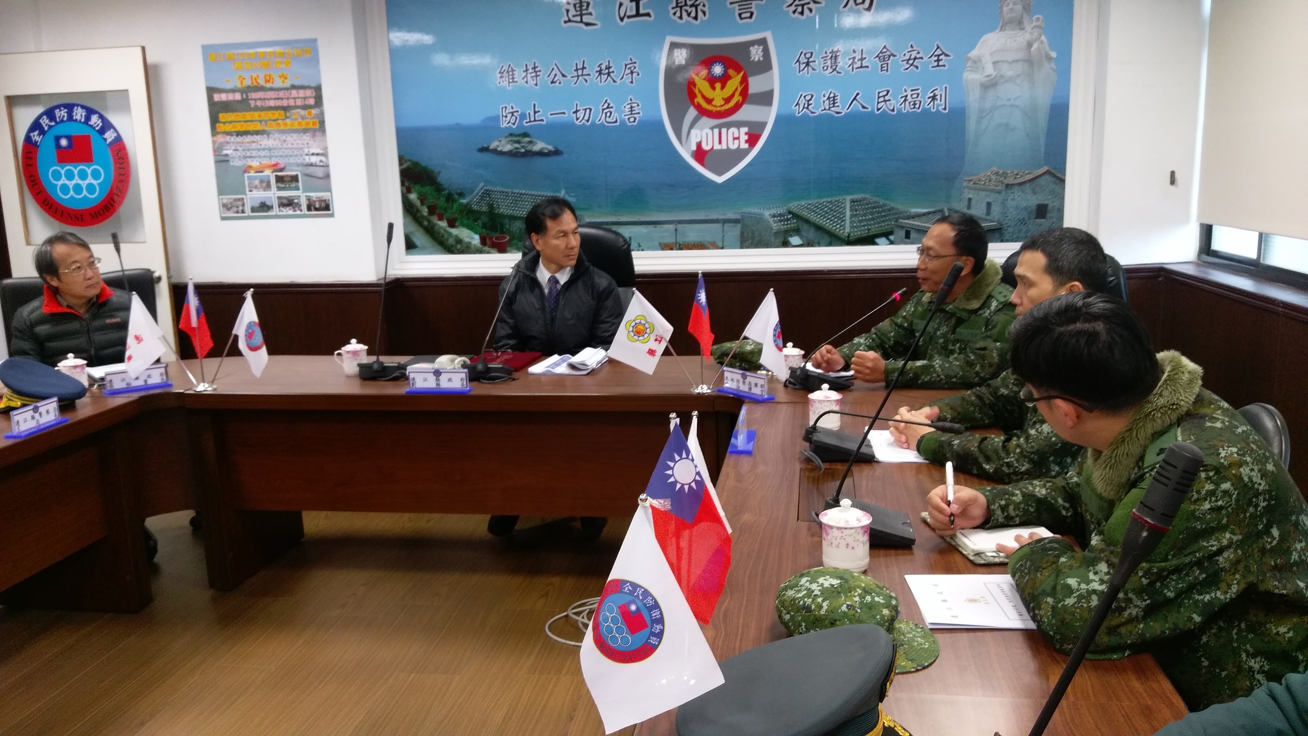 首場次106年軍民聯合防空(萬安40號)演習,已於2月21日1330至1400時於金門地區辦理完畢,由金門縣長陳福海先生主持,內政部警政署副署長官政哲先生率相關部會督導,演練防情傳遞、警報發放、交通管制等作為,並至金城國中視導教職員及學生疏散避難實況,動員警察、民防團隊、學生及國軍人力約4百餘人,圓滿達成任務。