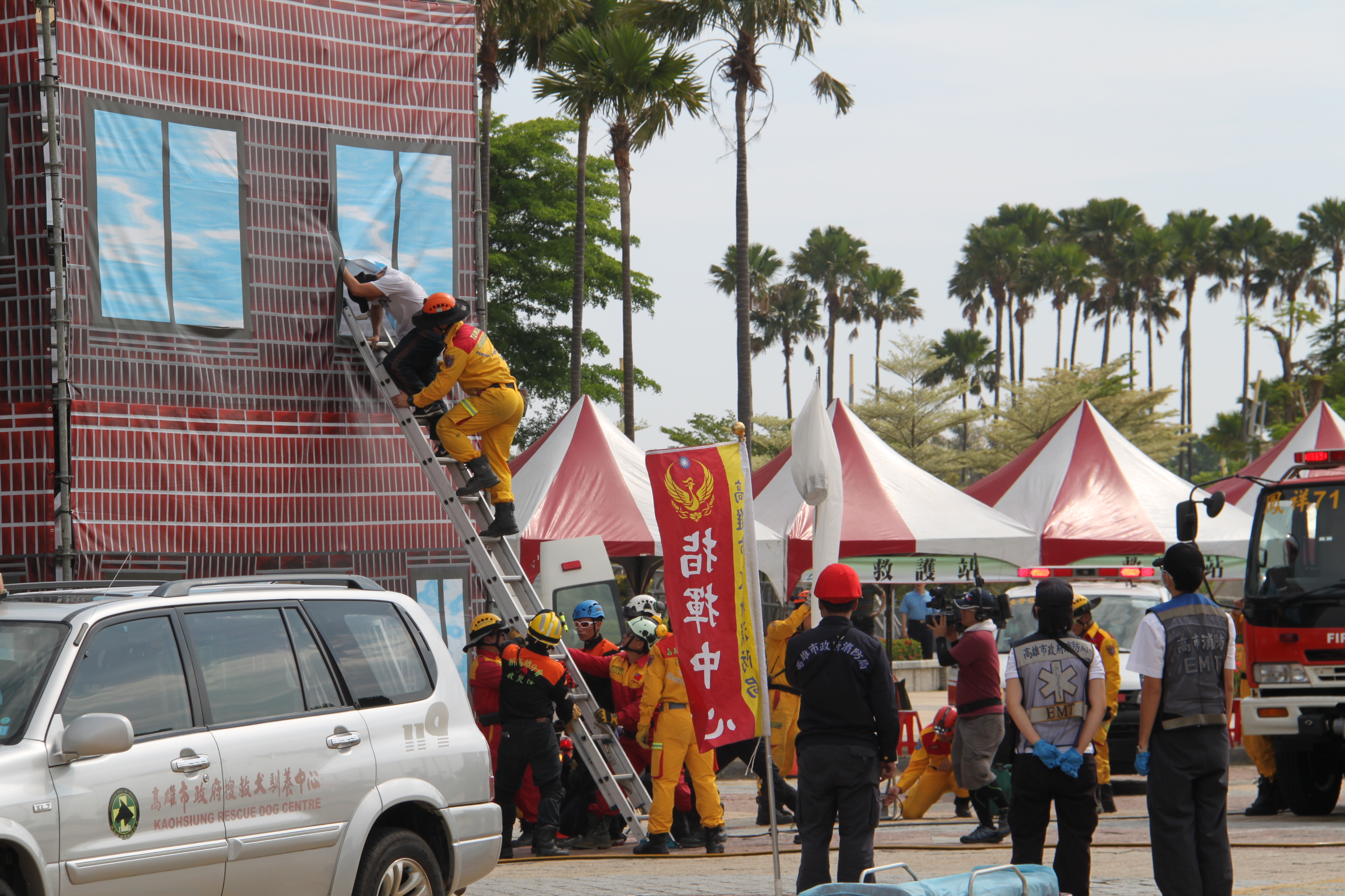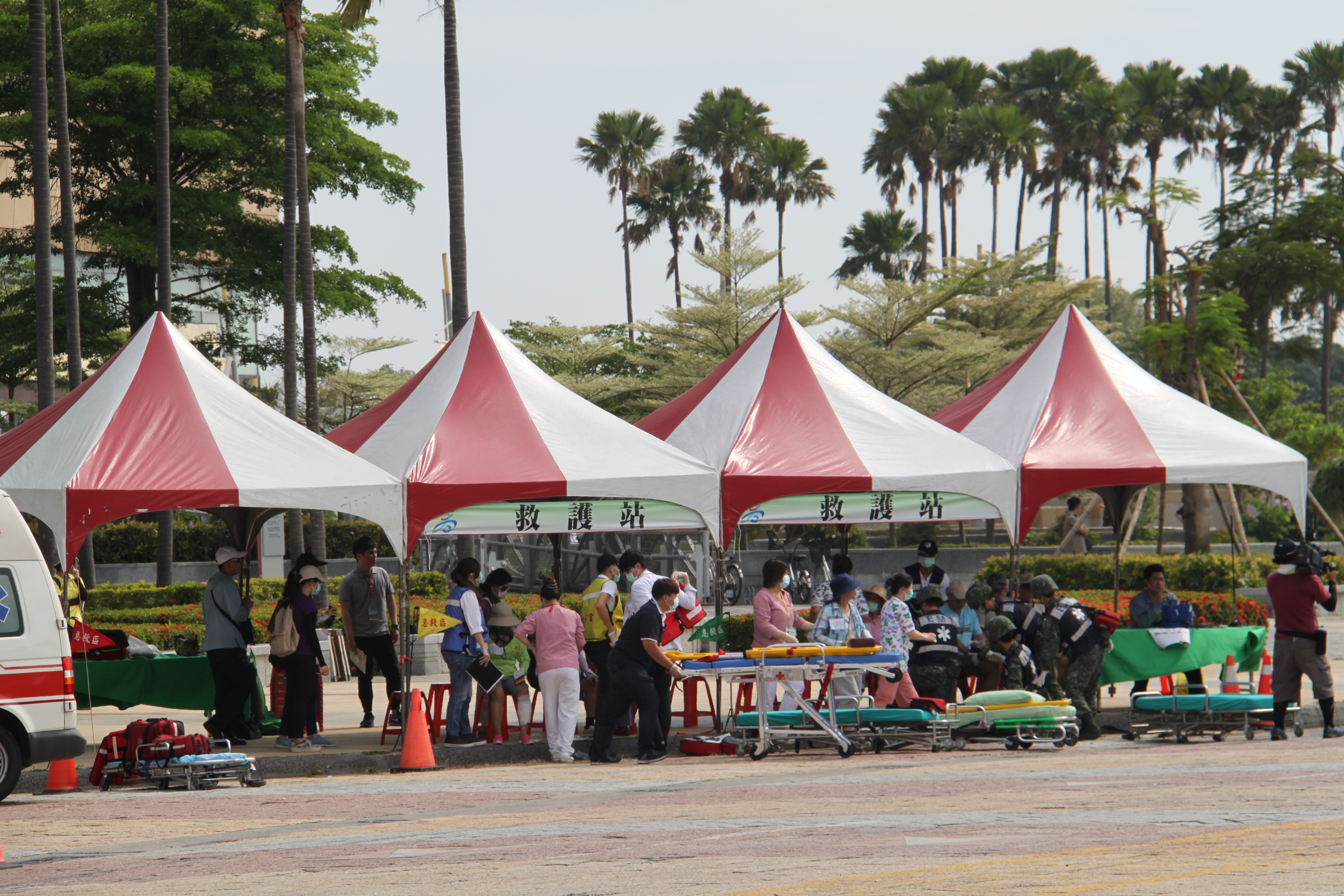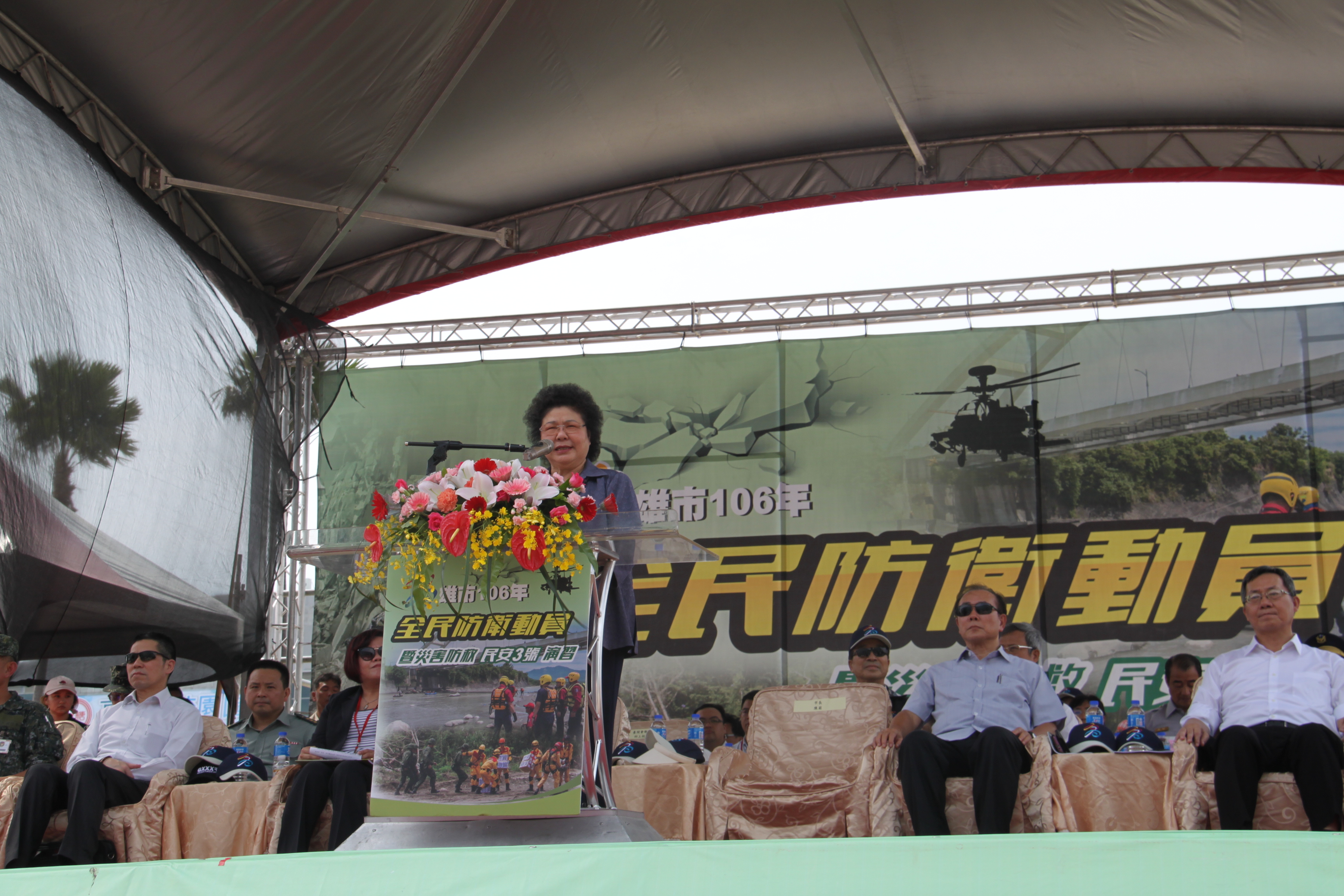 106年全民防衛動員暨災害防救(民安3號)演習-高雄市場次於5月11日(星期四)0930時至1600時,上午兵棋推演由副市長許銘春先生主持,下午綜合實作演練由市長陳菊女士主持,假高雄市災害應變中心及夢時代時代大道辦理完畢。
