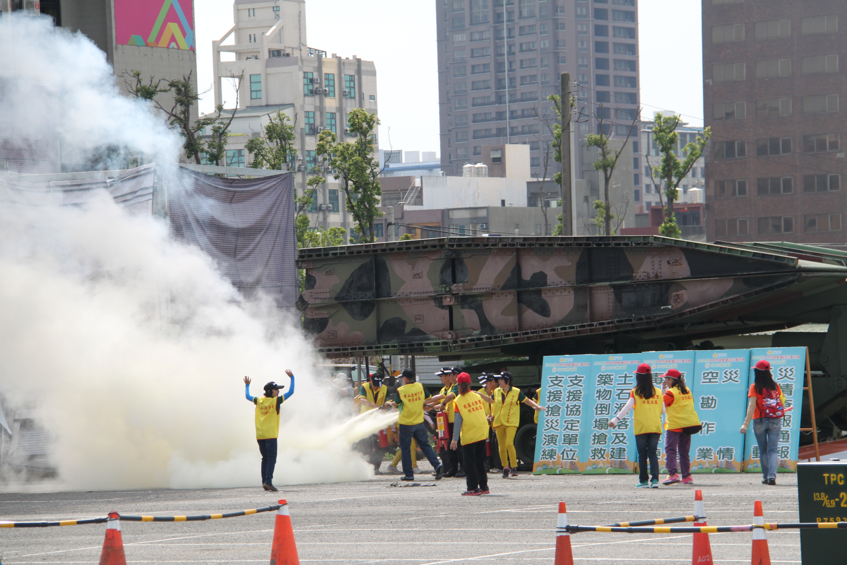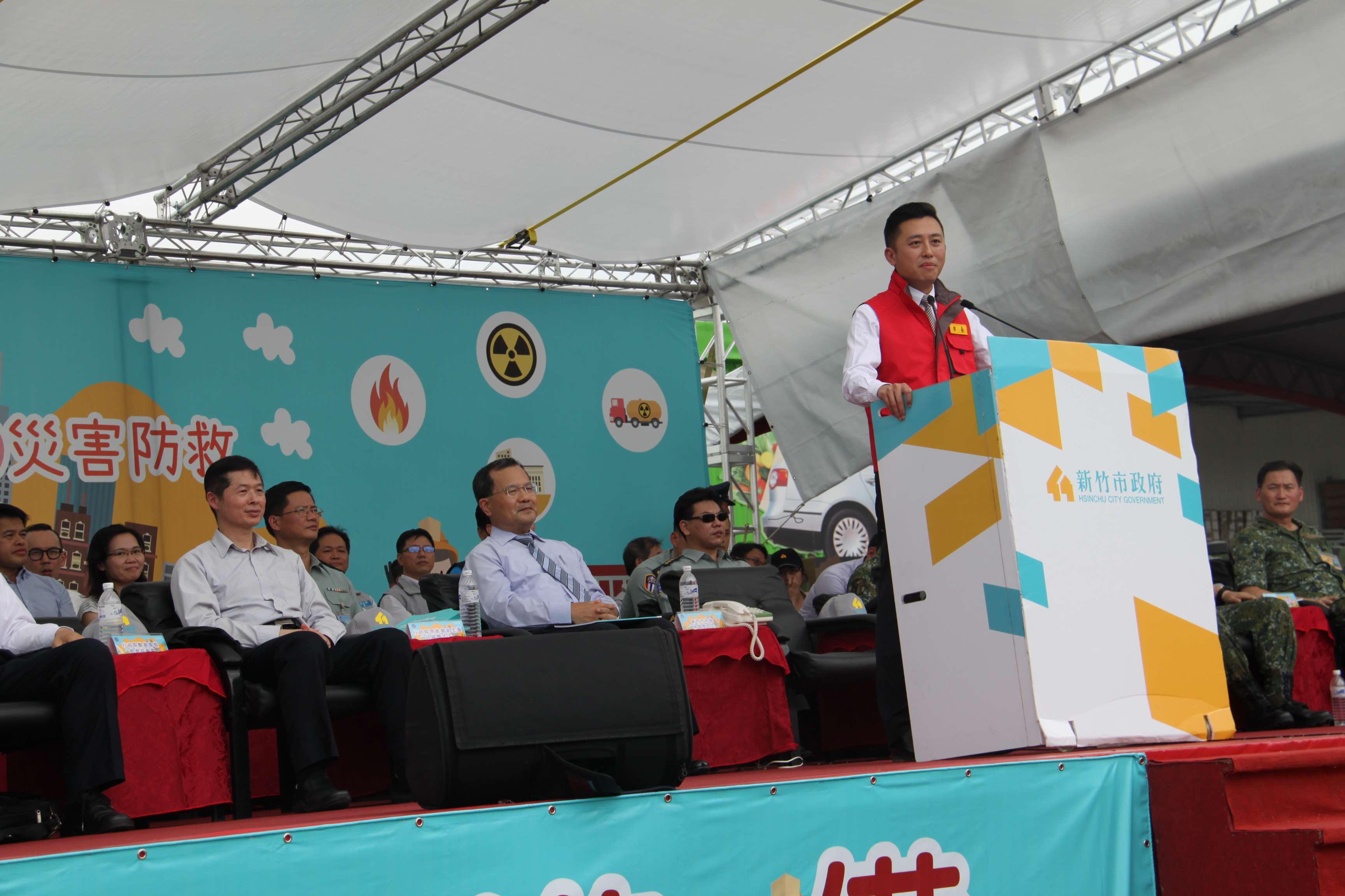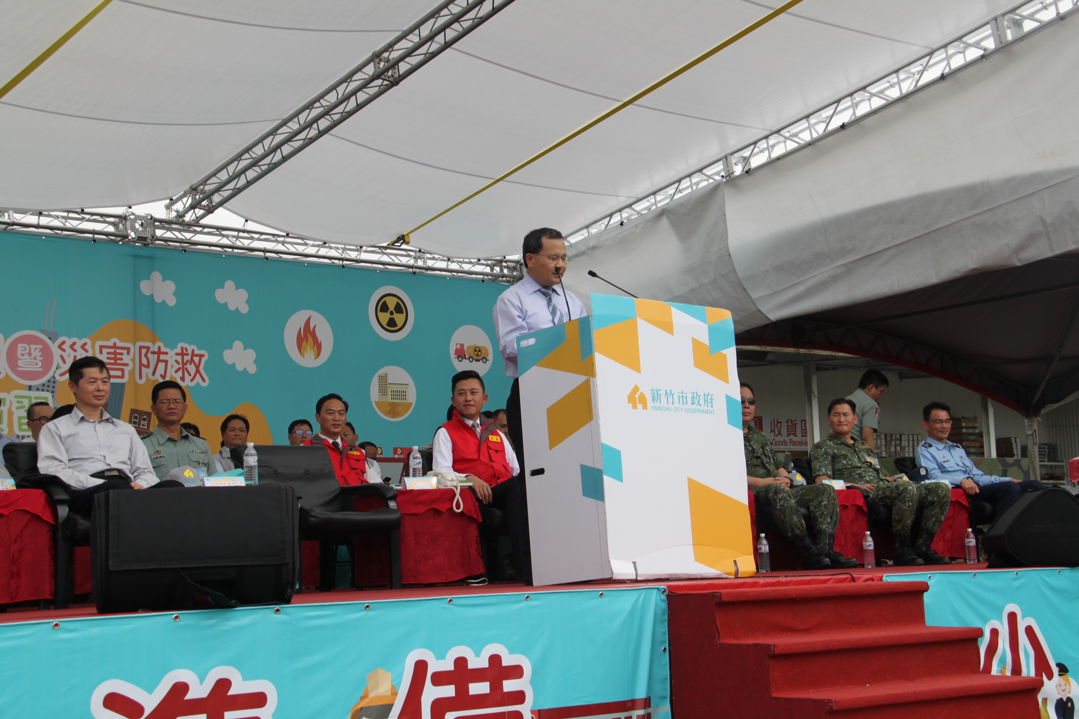 106年全民防衛動員暨災害防救(民安3號)演習-新竹市場次於5月18日(星期四)0930時至1600時,上午兵棋推演由副市長沈慧虹女士主持,下午綜合實作演練由市長林智堅先生主持,假光復中學體育館及新竹大潤發停車場辦理完畢。演練內容針對新竹市因地震引發複合式災害,如「放射性物質意外事件疏散及檢測演練」及「建築物倒塌人命搜救」之應變處置,實施兵棋推演及實作演練。演習指導官由原能會副主委邱賜聰先生擔任,並率領各部會代表出席視導,參演人員演練動作確實,各項應變處置得宜,充分展現政、軍、民間之協調合作能力,有效提高轄內各單位防災應變處置能力。