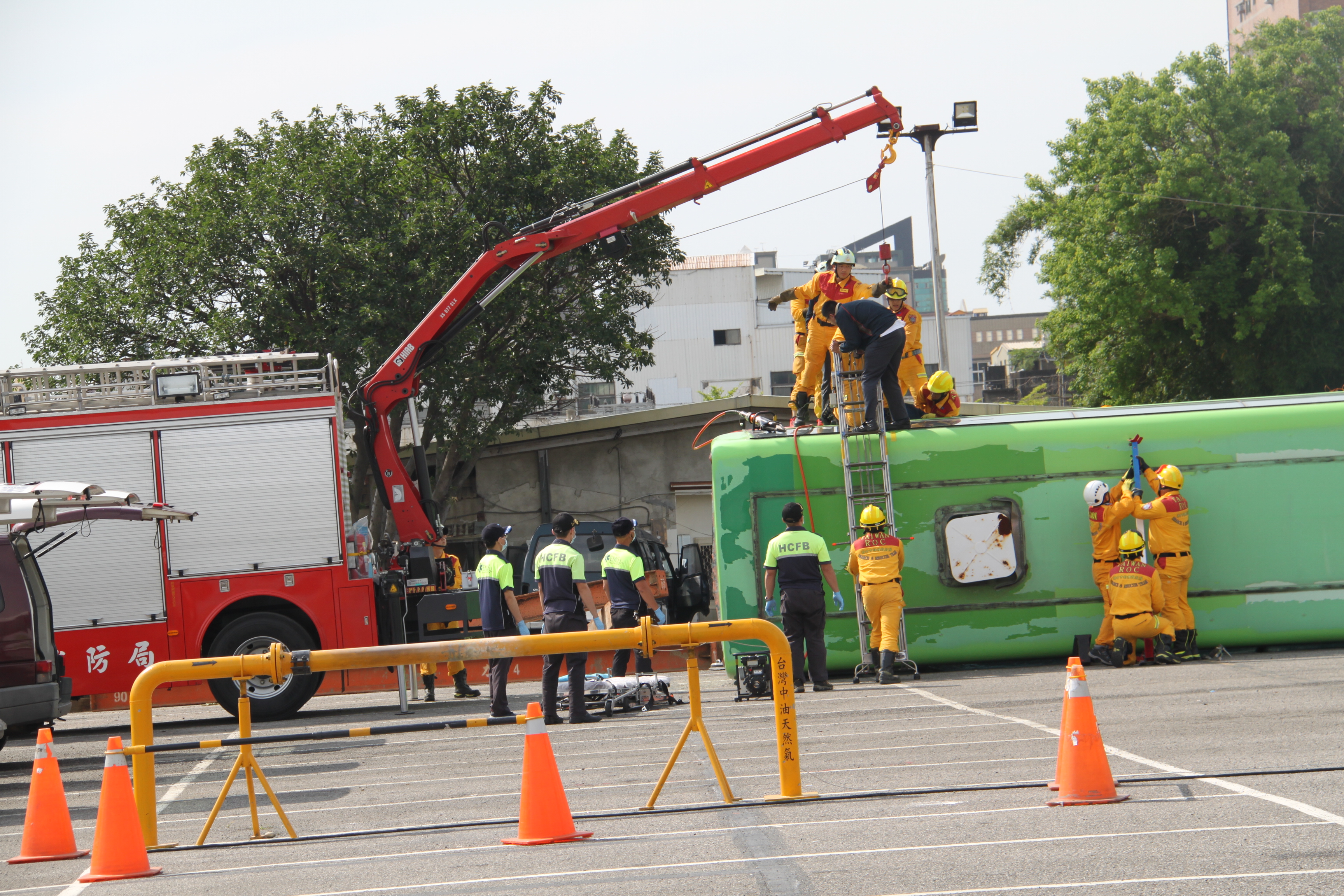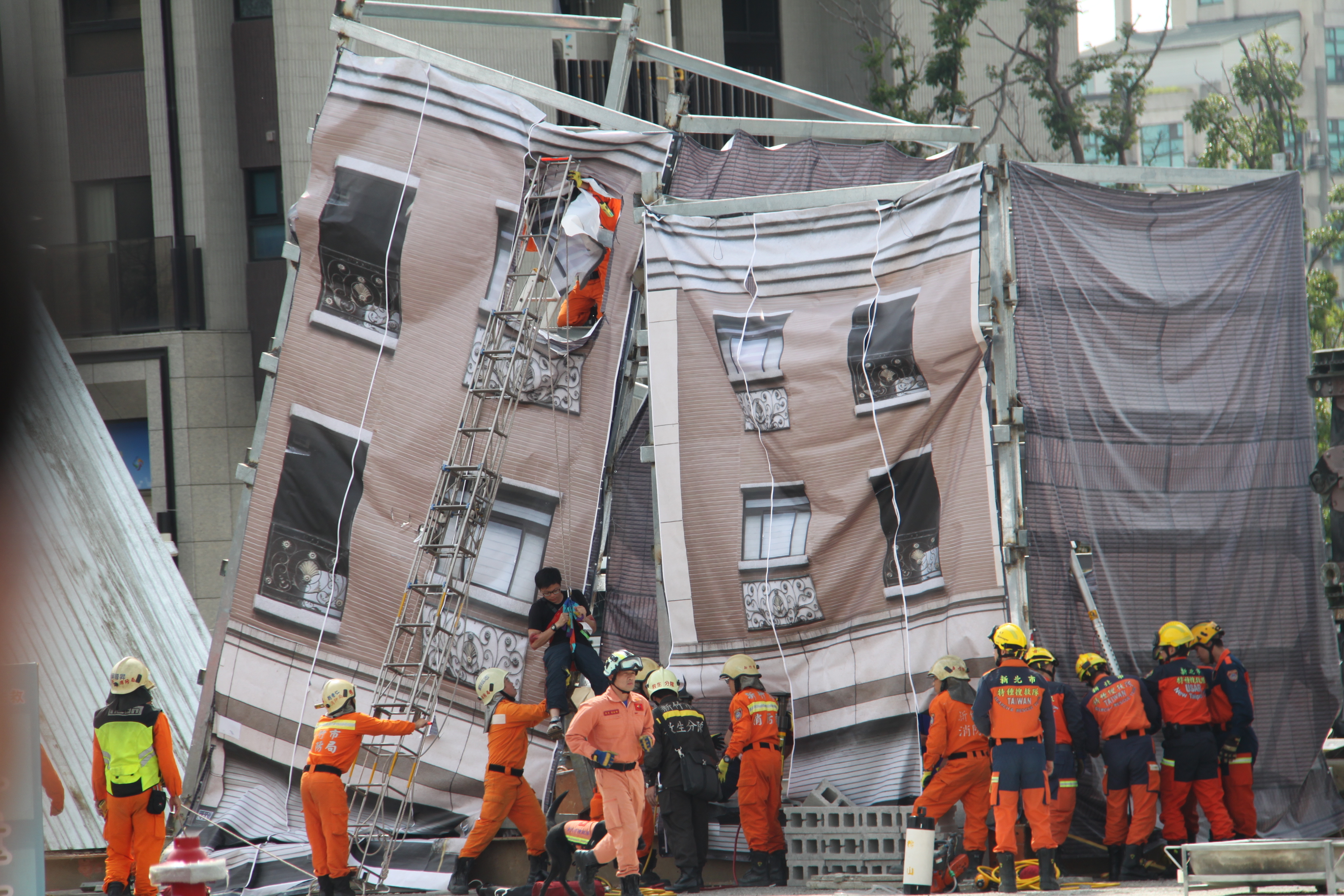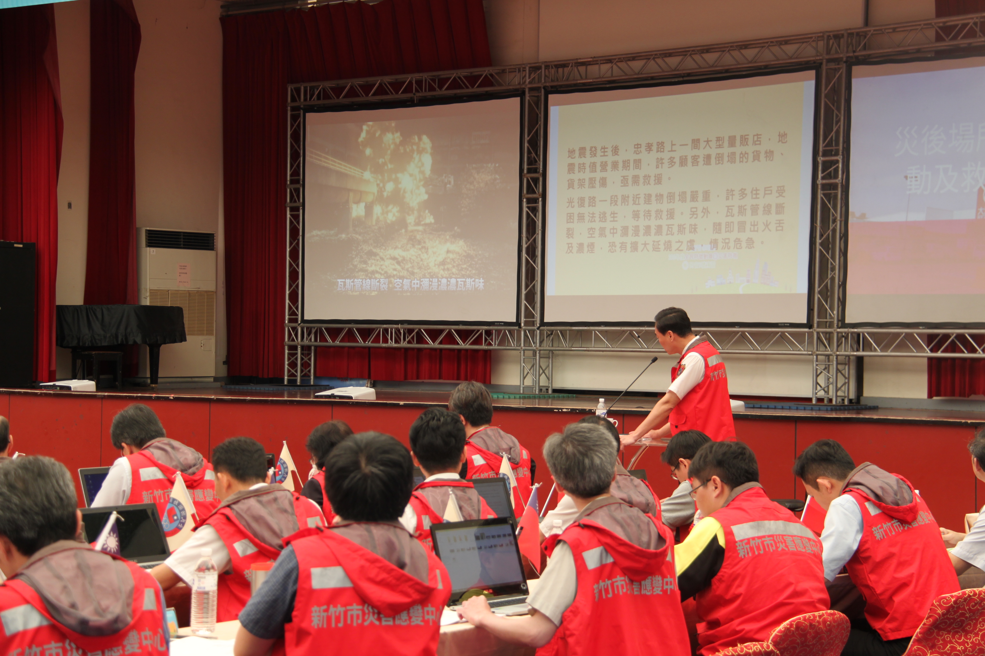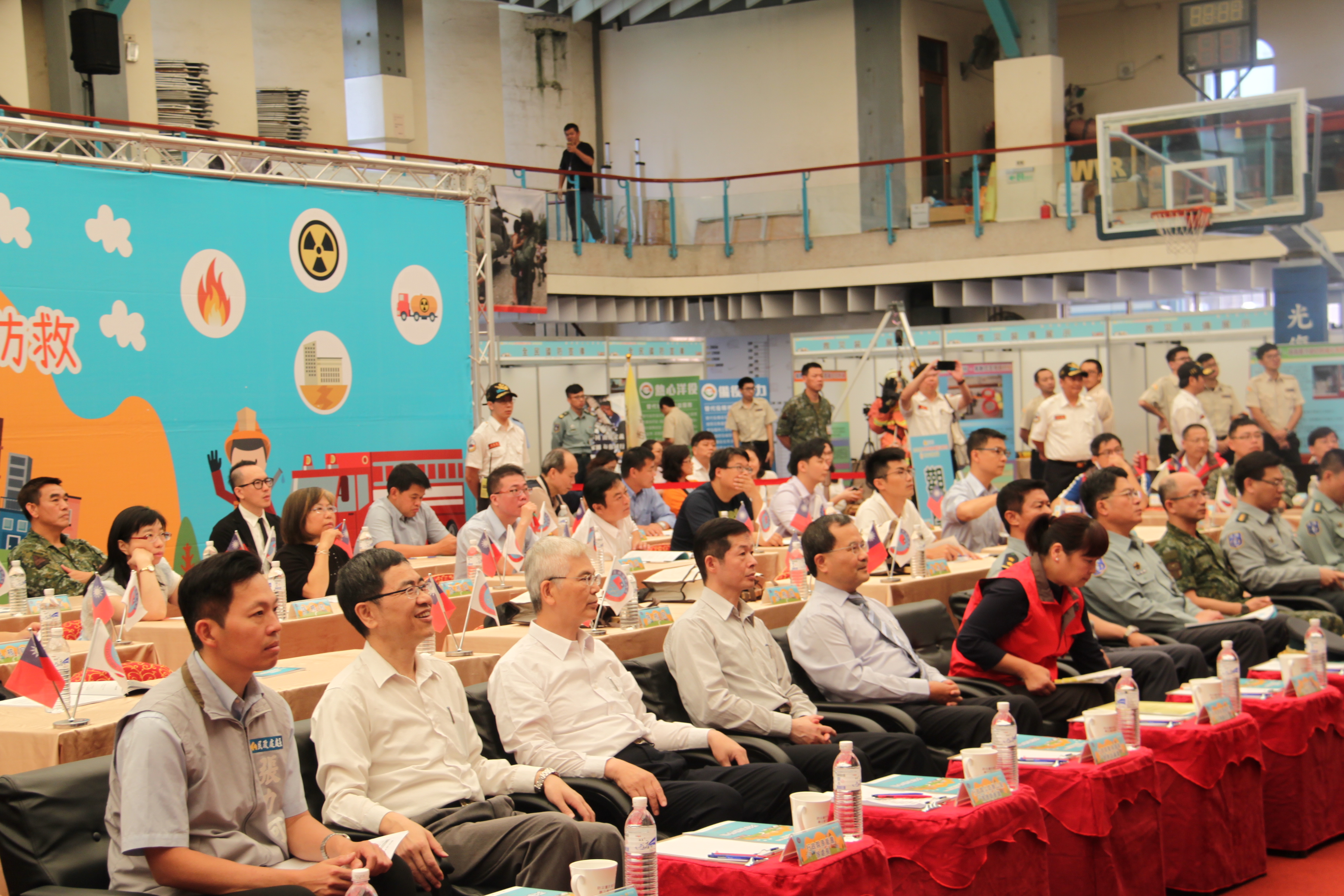 106年全民防衛動員暨災害防救(民安3號)演習-新竹市場次於5月18日(星期四)0930時至1600時,上午兵棋推演由副市長沈慧虹女士主持,下午綜合實作演練由市長林智堅先生主持,假光復中學體育館及新竹大潤發停車場辦理完畢。演練內容針對新竹市因地震引發複合式災害,如「放射性物質意外事件疏散及檢測演練」及「建築物倒塌人命搜救」之應變處置,實施兵棋推演及實作演練。演習指導官由原能會副主委邱賜聰先生擔任,並率領各部會代表出席視導,參演人員演練動作確實,各項應變處置得宜,充分展現政、軍、民間之協調合作能力,有效提高轄內各單位防災應變處置能力。