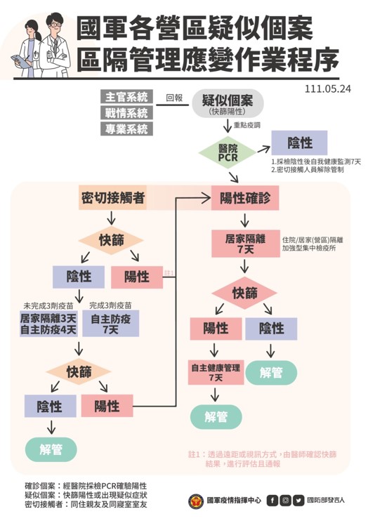 2、若官兵確診,單位會評估身體復原的健康狀況,確認無虞後,再回到工作崗位執行各項戰備任務。