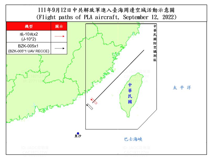 國防部今(12)日表示,迄1700時止,偵獲共機7架次(逾越海峽中線及其延伸線進入西南空域3架次)、共艦3艘次,持續於臺灣周邊海空域活動。國軍運用任務機、艦及岸置飛彈系統嚴密監控與應處。