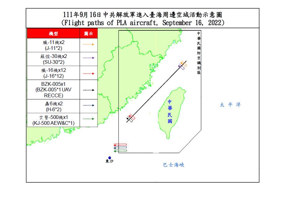 國防部今(16)日表示,迄1700時止,偵獲共機43架次(逾越海峽中線及其延伸線進入西南空域20架次)、共艦5艘次,持續於臺灣周邊海空域活動。國軍運用任務機、艦及岸置飛彈系統嚴密監控與應處。