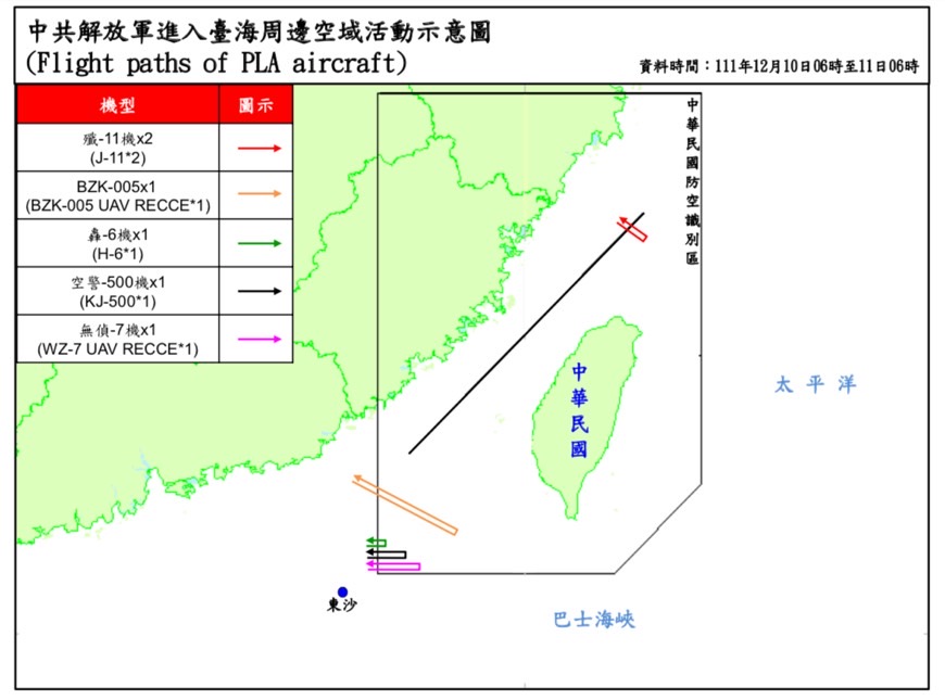 迄0600時止,偵獲共機13架次(其中逾越海峽中線及其延伸線進入西南空域6架次)、共艦4艘次,持續在臺海周邊活動。國軍運用任務機、艦及岸置飛彈系統嚴密監控與應處。