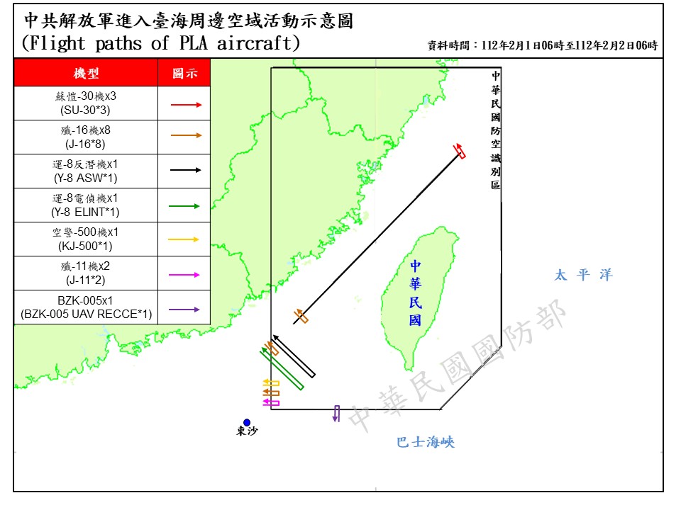迄0600時止,偵獲共機23架次(其中逾越海峽中線及其延伸線進入西南空域17架次)、共艦4艘次,持續在臺海周邊活動。國軍運用任務機、艦及岸置飛彈系統嚴密監控與應處。