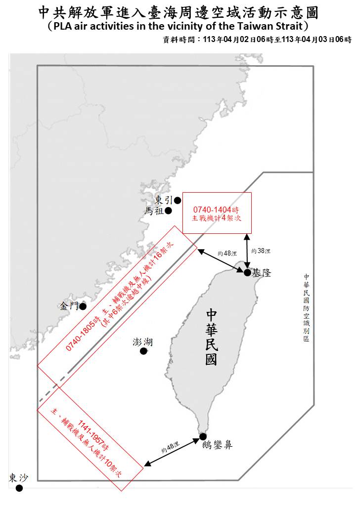 中共解放軍臺海周邊海、空域動態(113年4月2日)