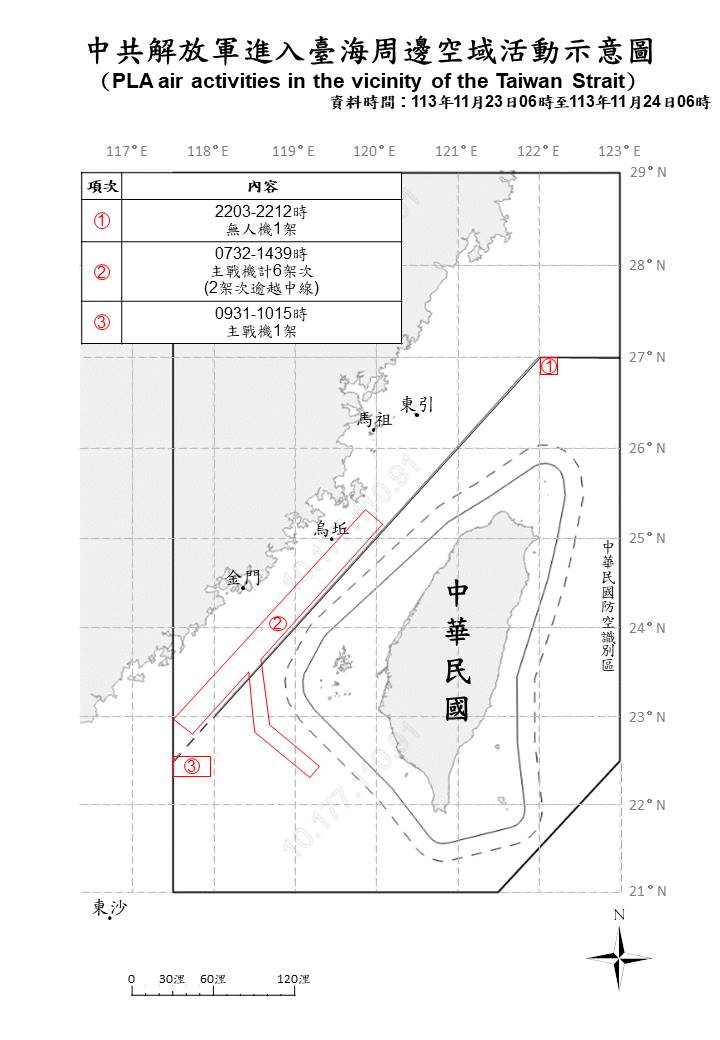 1131124_臺海周邊海、空域活動示意圖