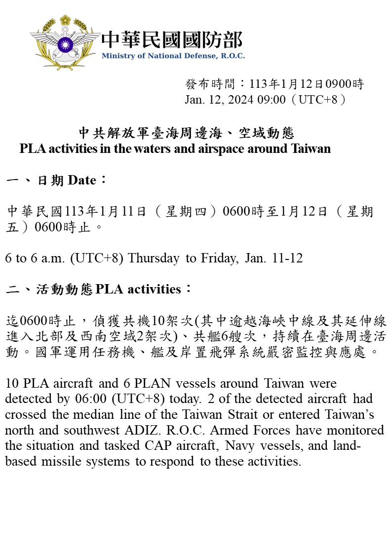PLA Activities 2024.01.12 Issuing Authority:Political Warfare Bureau