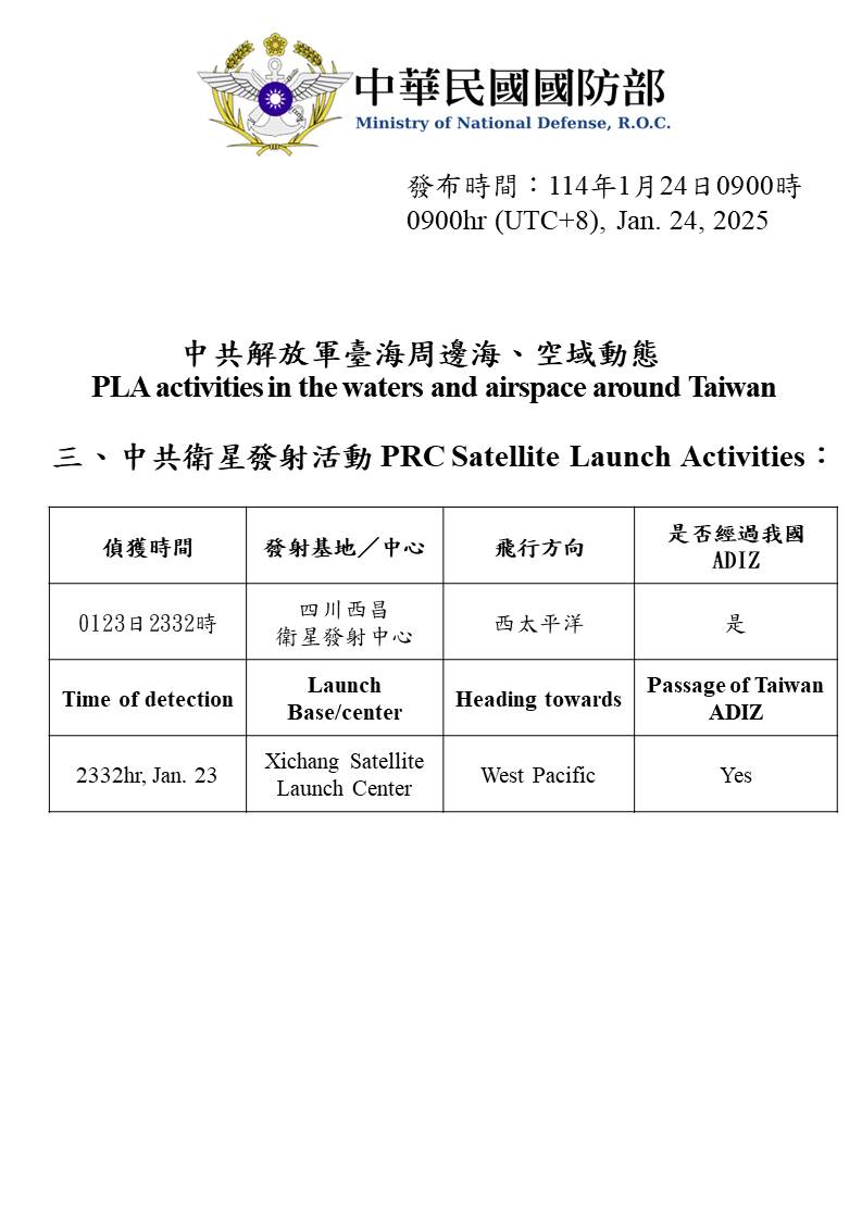 1140124_Diagram of PLA activities in the waters and airspace around Taiwan Number of downloads: 149 圖片icon
