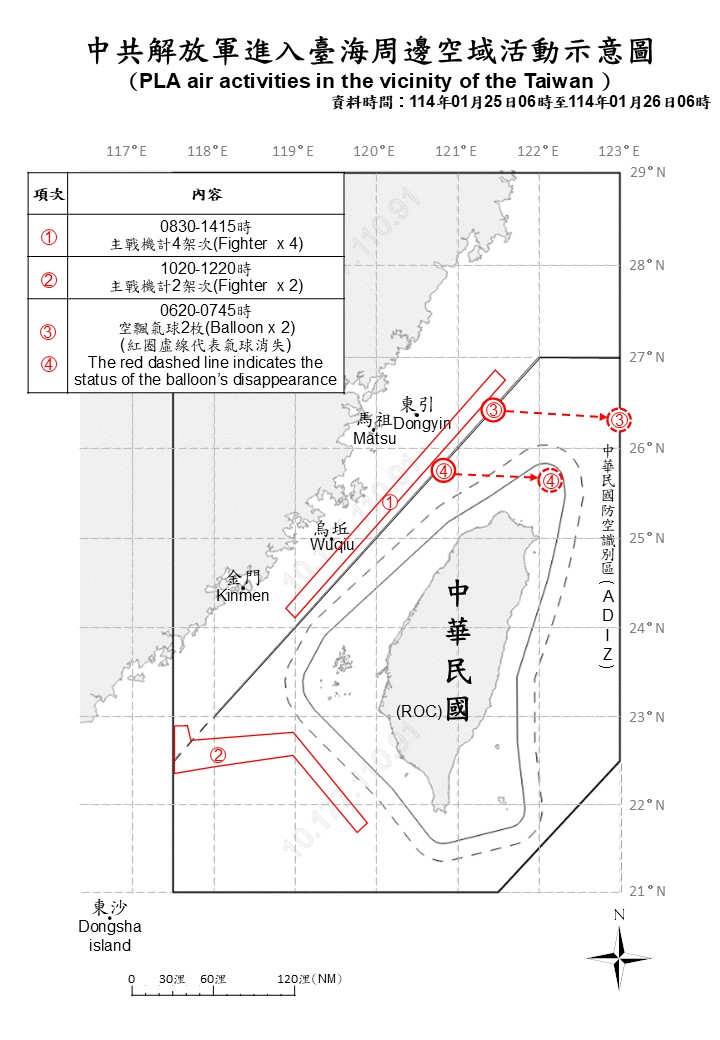 1140126_Diagram of PLA activities in the waters and airspace around Taiwan