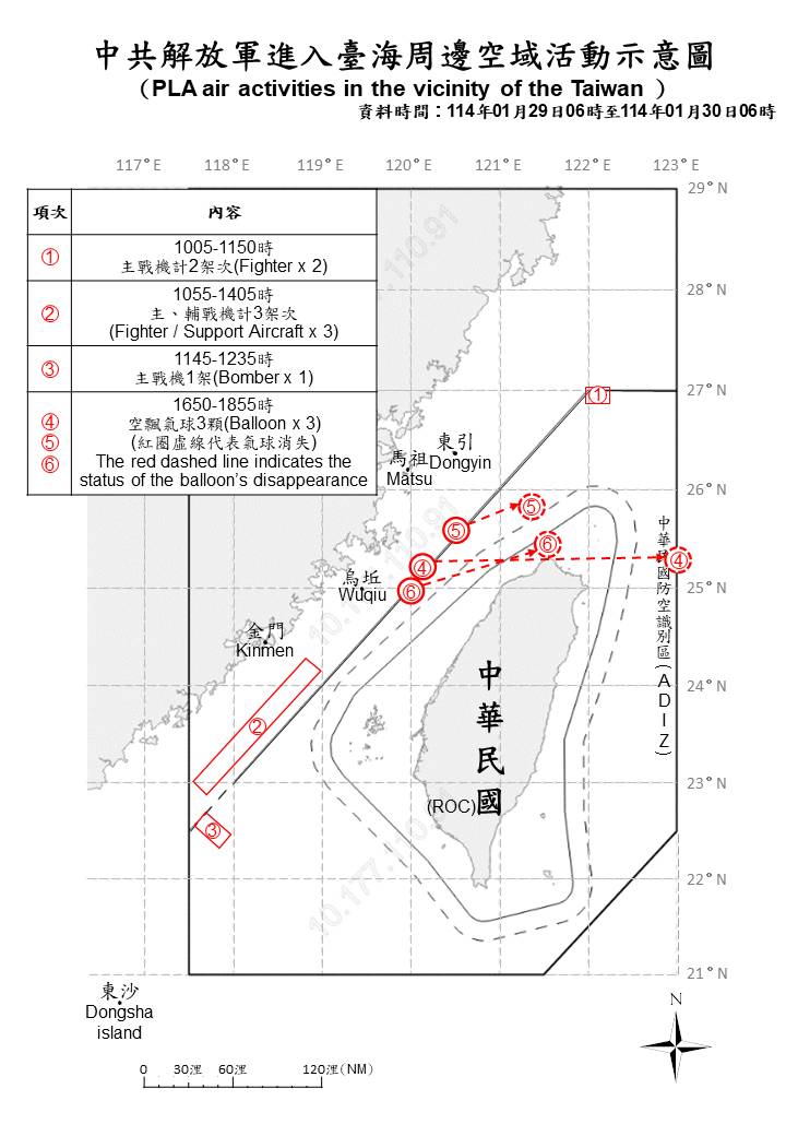 1140130_Diagram of PLA activities in the waters and airspace around Taiwan