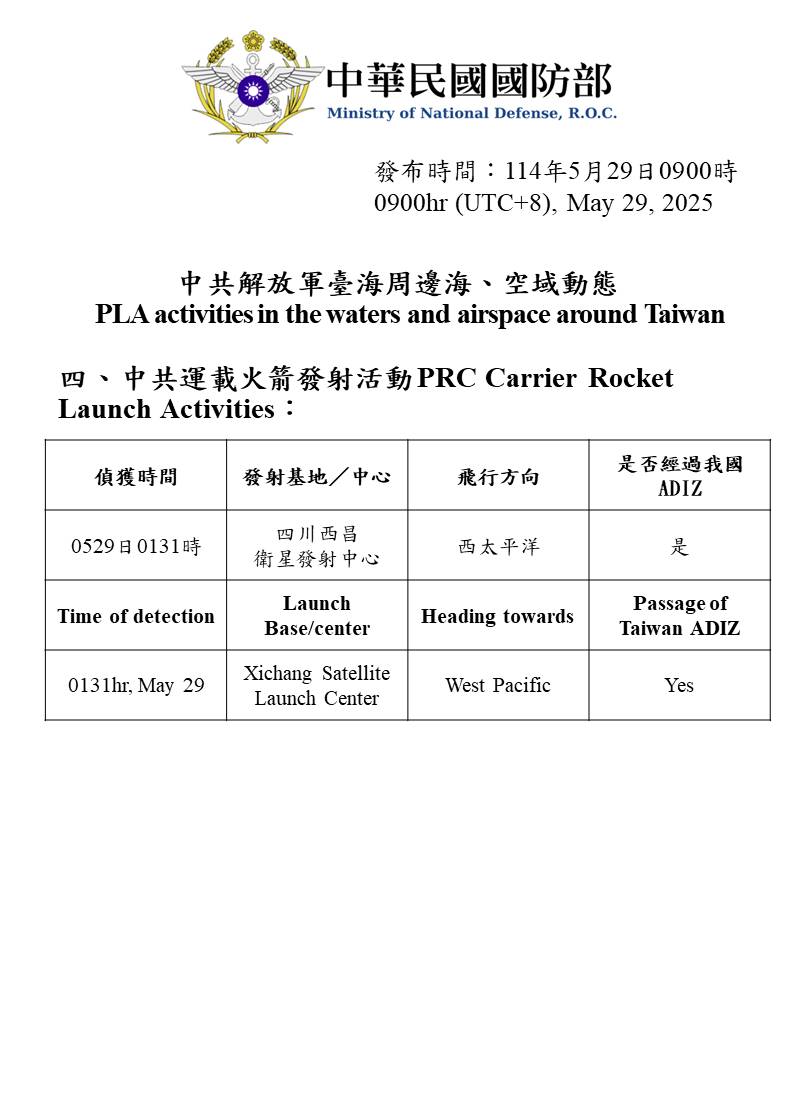 PLA Activities 2025.05.29 Issuing Authority:Political Warfare Bureau