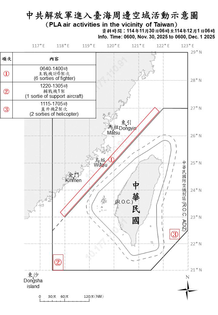 9 sorties of PLA aircraft, 11 PLAN ships and 1 offical ships operating around Taiwan were detected as of 6 a.m. (UTC+8) today. 3 out of 9 sorties crossed the median line of the Taiwan Strait and entered Taiwan’s southwestern and eastern ADIZ. ROC Armed Forces have monitored the situation and employed CAP aircraft, Navy ships, and coastal missile systems in response to detected activities.