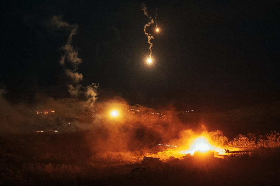 Flash booms illuminated the target area, and tanks immediately attacked the target, hitting it successfully. (Photographed by Lin Ting-hui, Military News Agency)