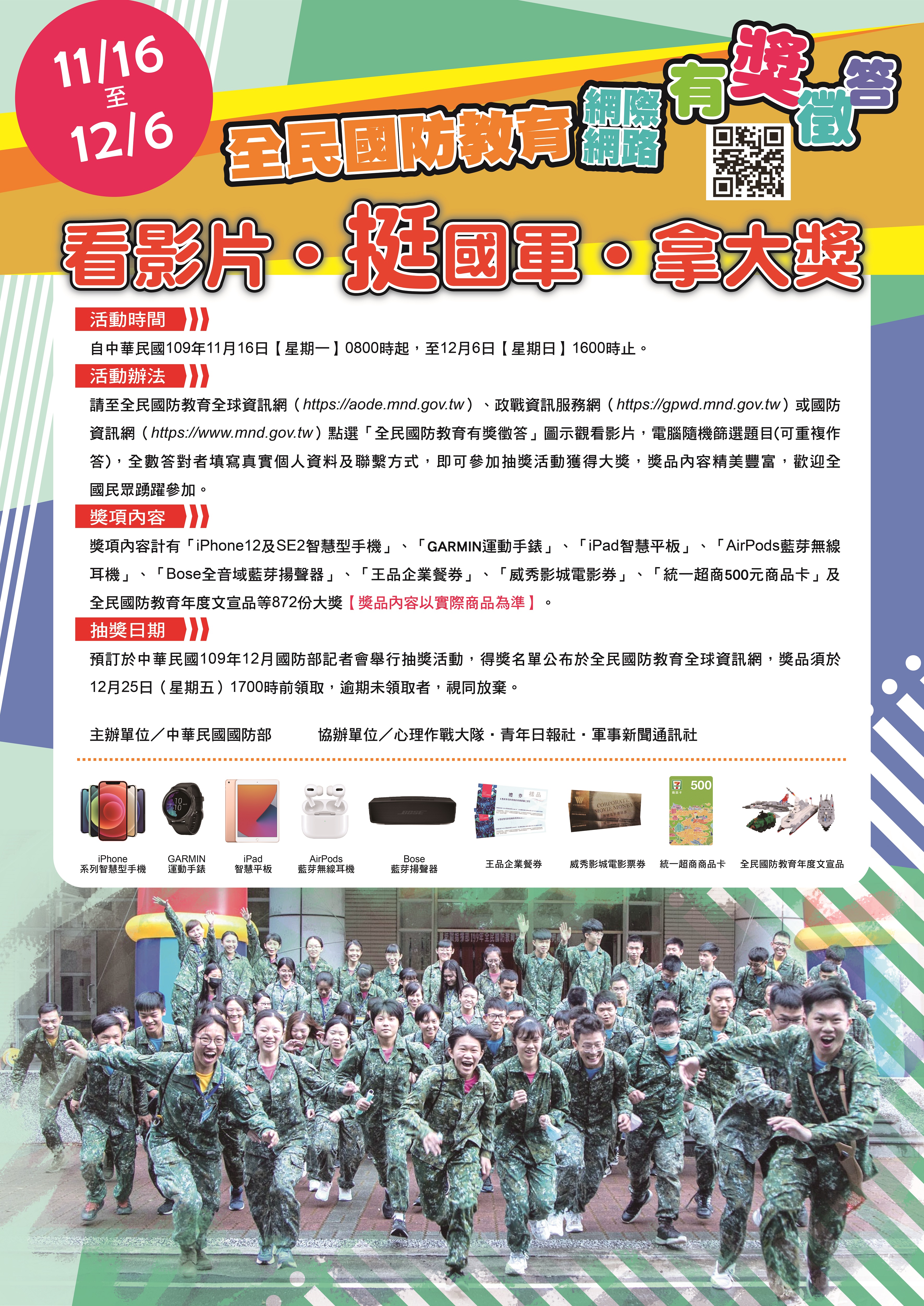 民國109年全民國防教育「網際網路有獎徵答活動」宣導海報(公告).jpg 下載次數: 390 圖片icon
