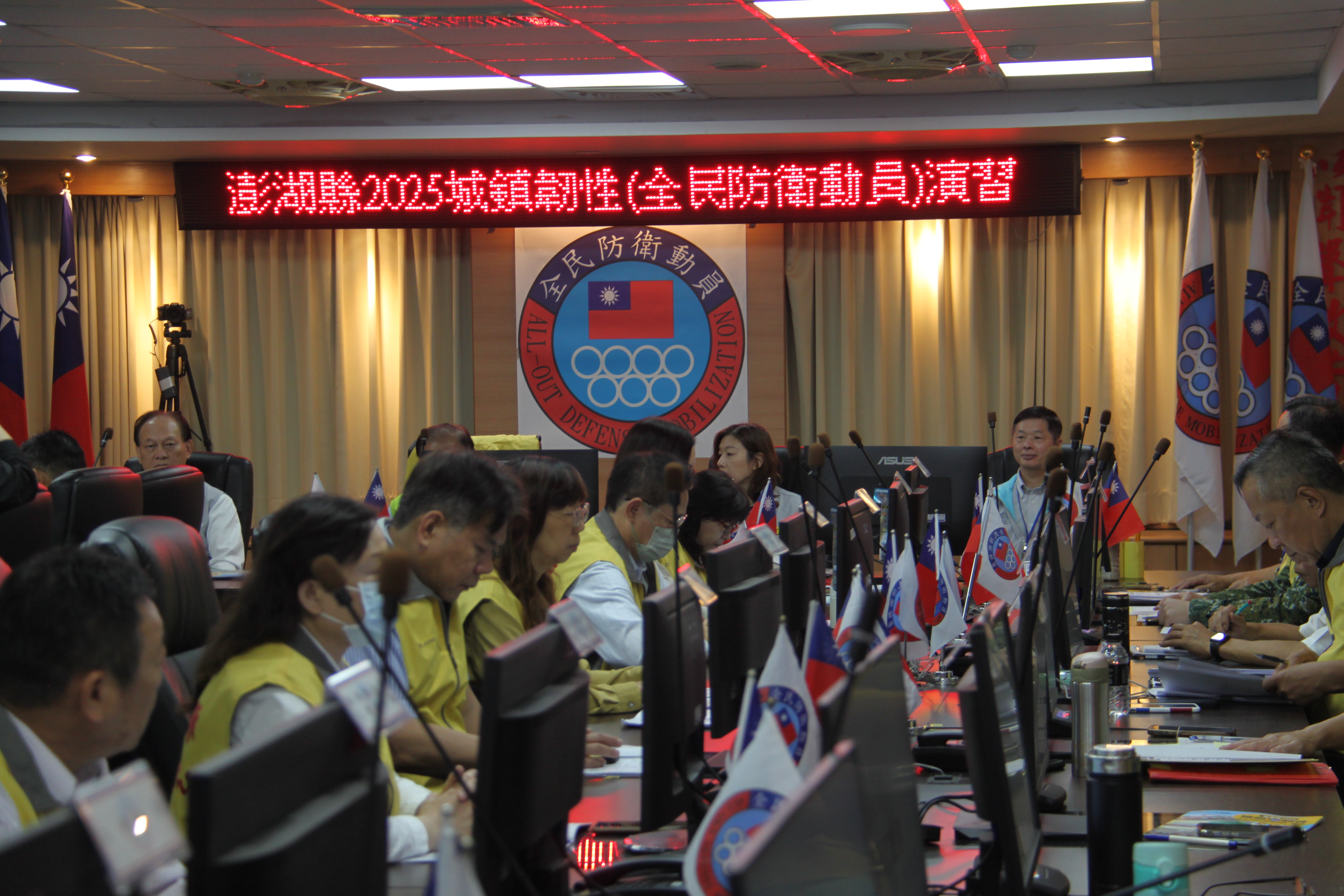 第6場次2025城鎮韌性(全民防衛動員)演習已由澎湖縣政府於6月5日(星期四)辦理完畢,演習由縣長陳光復先生擔任指揮官,衛生福利部政務次長林靜儀女士任行政院指導官率中央各部會代表實施評核,另行政院政務委員季連城先生也全程與會觀摩,展現中央地方共同對全社會防衛韌性整備的重視。