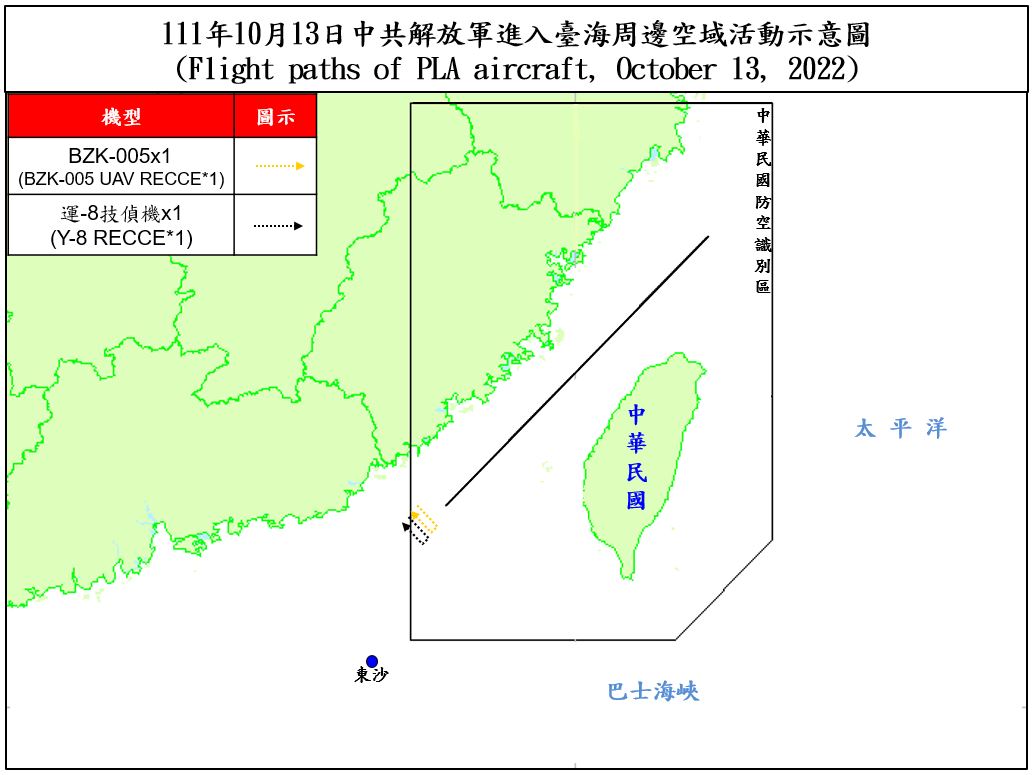 國防部今(13)日表示,迄1700時止,偵獲共機13架次(其中進入西南空域2架次)、共艦4艘次,持續於臺灣周邊海空域活動。國軍運用任務機、艦及岸置飛彈系統嚴密監控與應處。