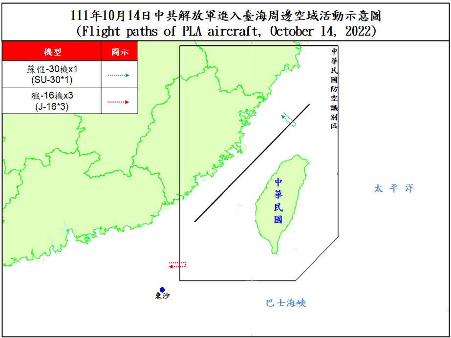 國防部今(14)日表示,迄1700時止,偵獲共機23架次(逾越海峽中線及進入西南空域4架次)、共艦5艘次,持續於臺灣周邊海空域活動。國軍運用任務機、艦及岸置飛彈系統嚴密監控與應處。