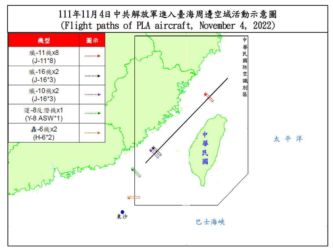 國防部今(4)日表示,迄1700時止,偵獲共機27架次(逾越海峽中線及其延伸線進入西南空域15架次)、共艦4艘次,持續於臺灣周邊海空域活動。國軍運用任務機、艦及岸置飛彈系統嚴密監控與應處。