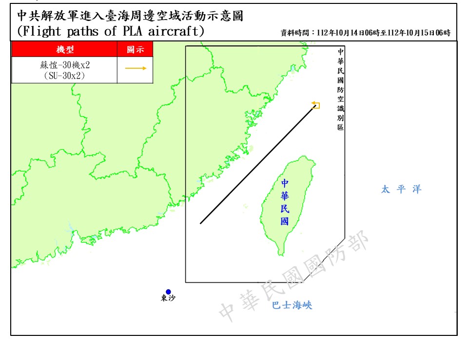 迄0600時止,偵獲共機9架次(其中逾越海峽中線及進入北部空域2架次)、共艦5艘次,在臺海周邊活動。國軍運用任務機、艦及岸置飛彈系統嚴密監控與應處。