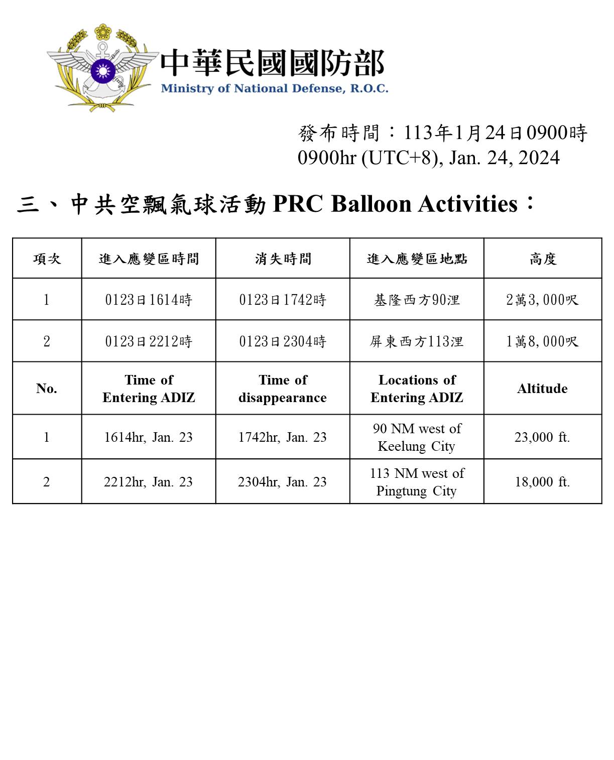 1130124_臺海周邊海、空域活動_2