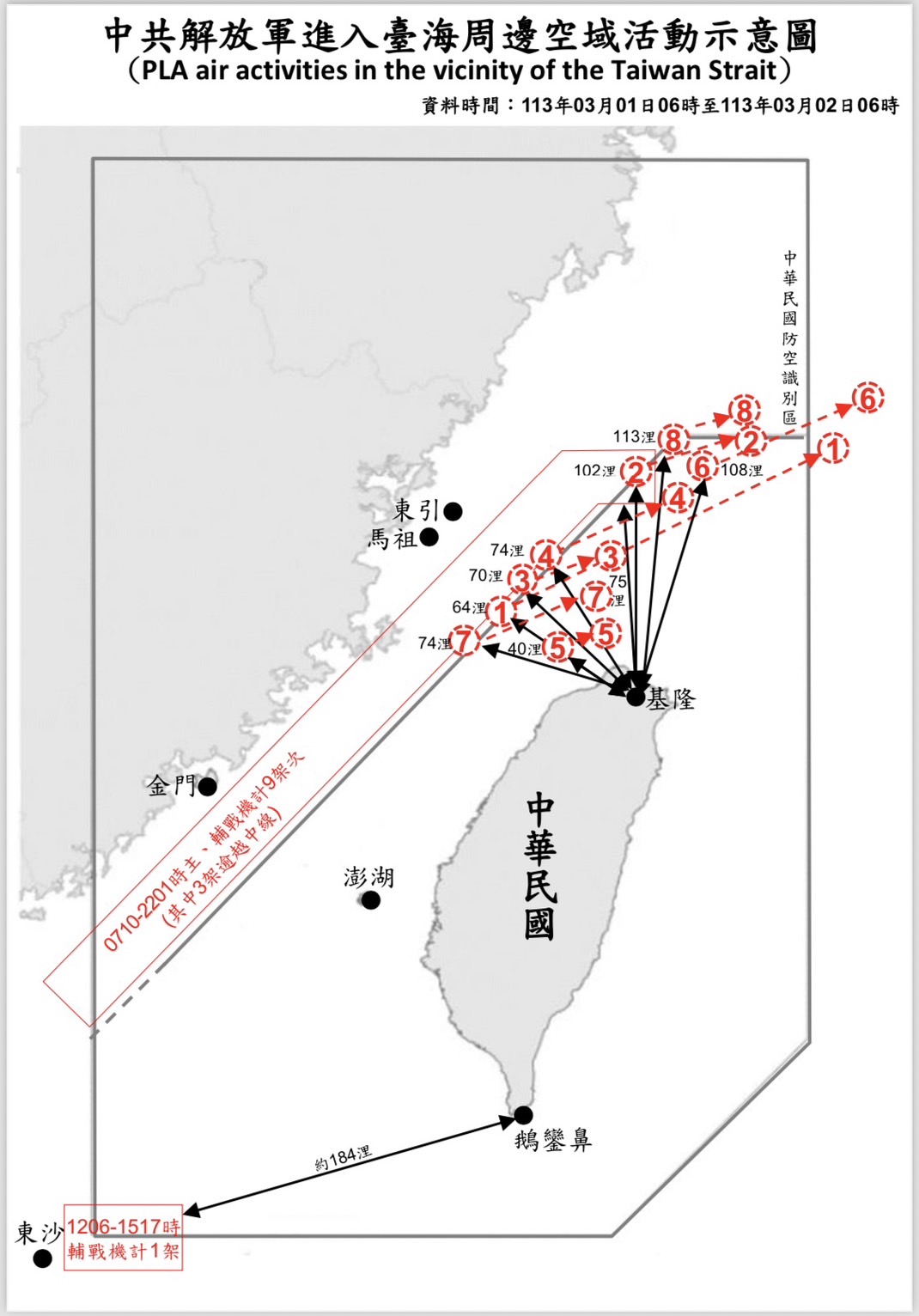 1130302_臺海周邊海、空域活動示意圖