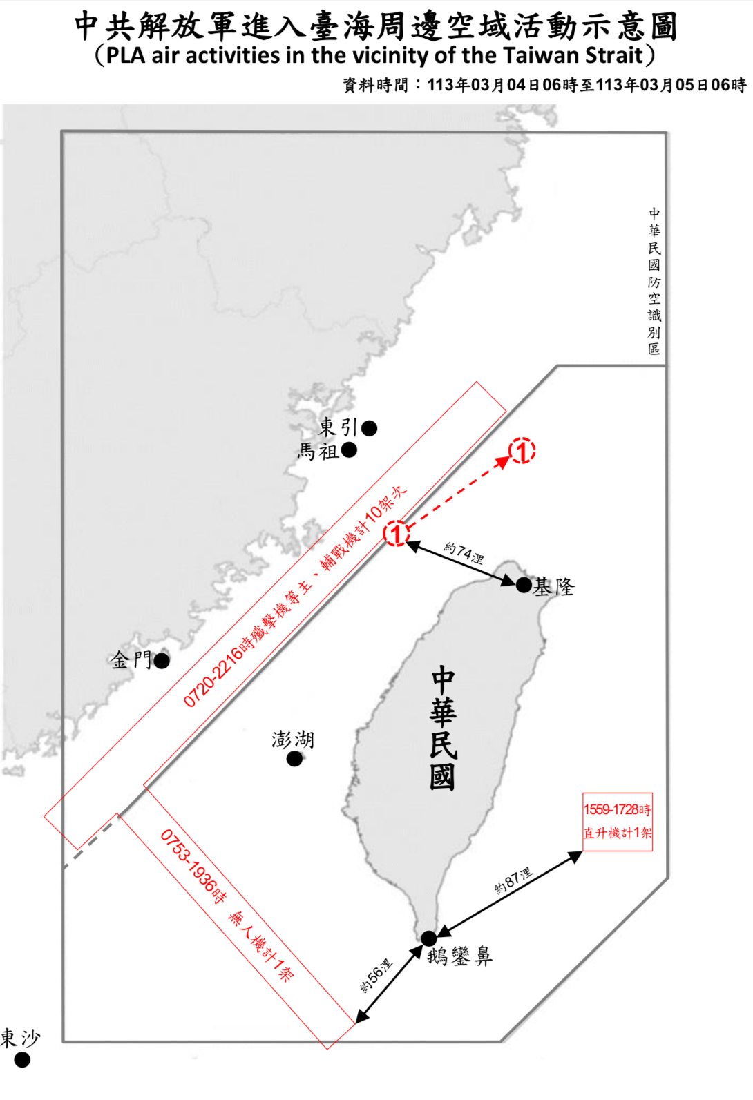 1130305_臺海周邊海、空域活動示意圖