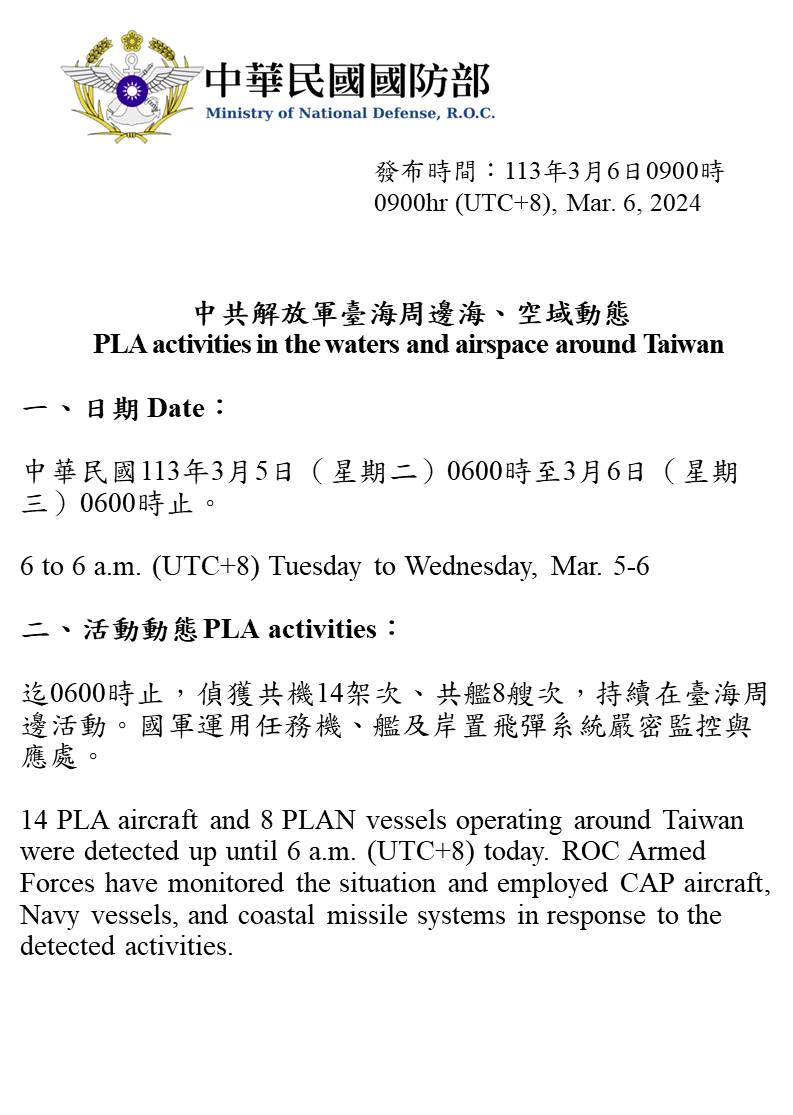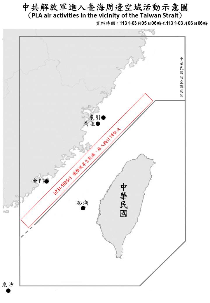 中共解放軍臺海周邊海、空域動態(113年3月6日)
