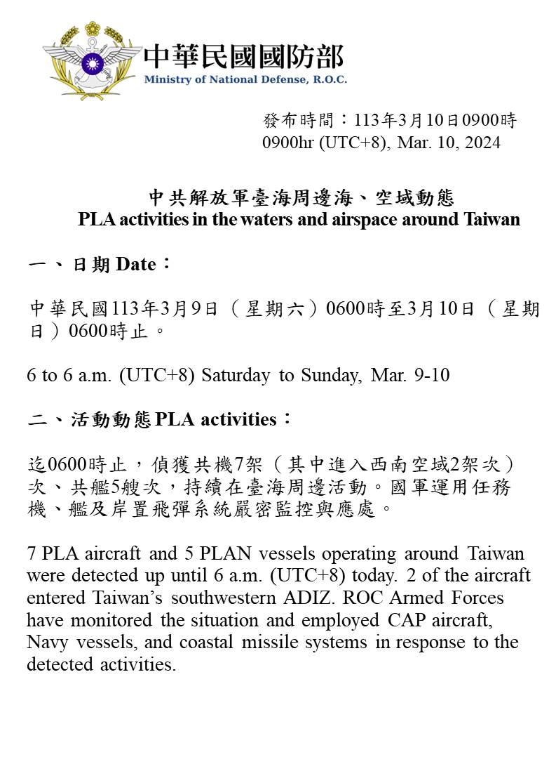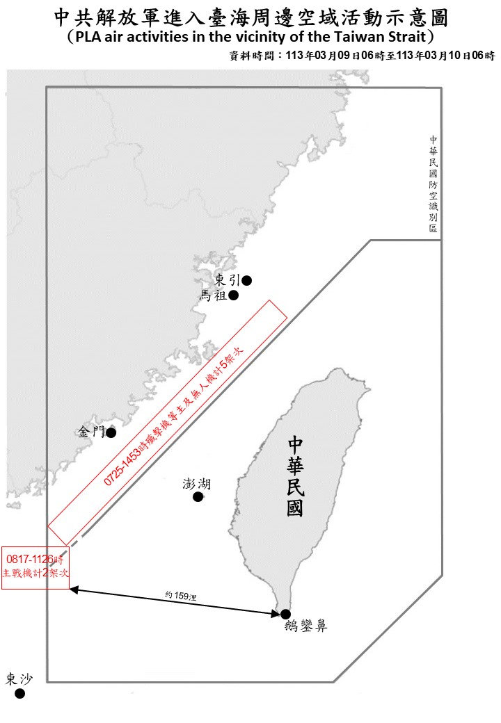 中共解放軍臺海周邊海、空域動態(113年3月10日)