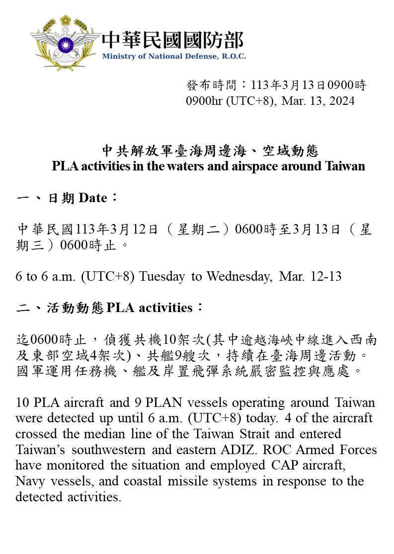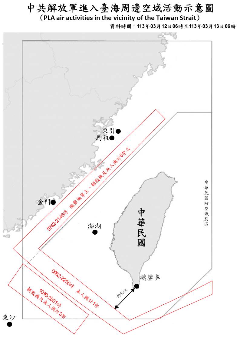 中共解放軍臺海周邊海、空域動態(113年3月13日)