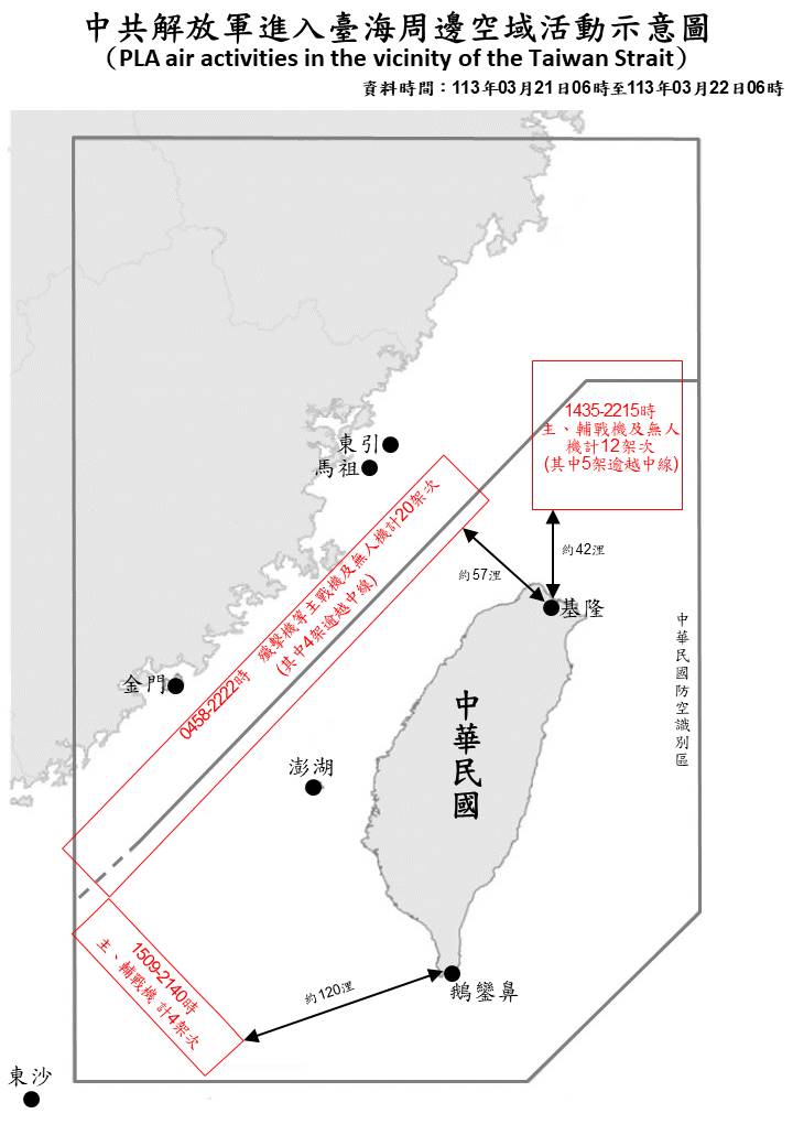 1130322_中共人民解放軍進入臺海周邊活動空域示意圖