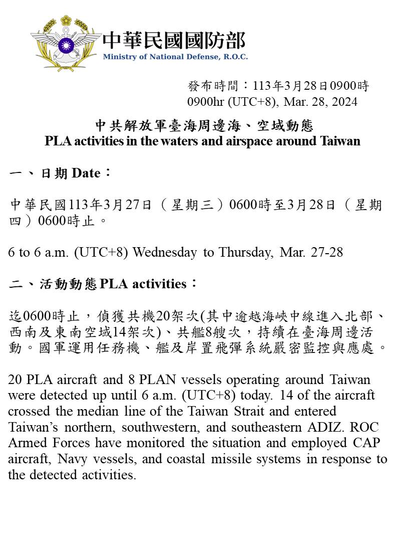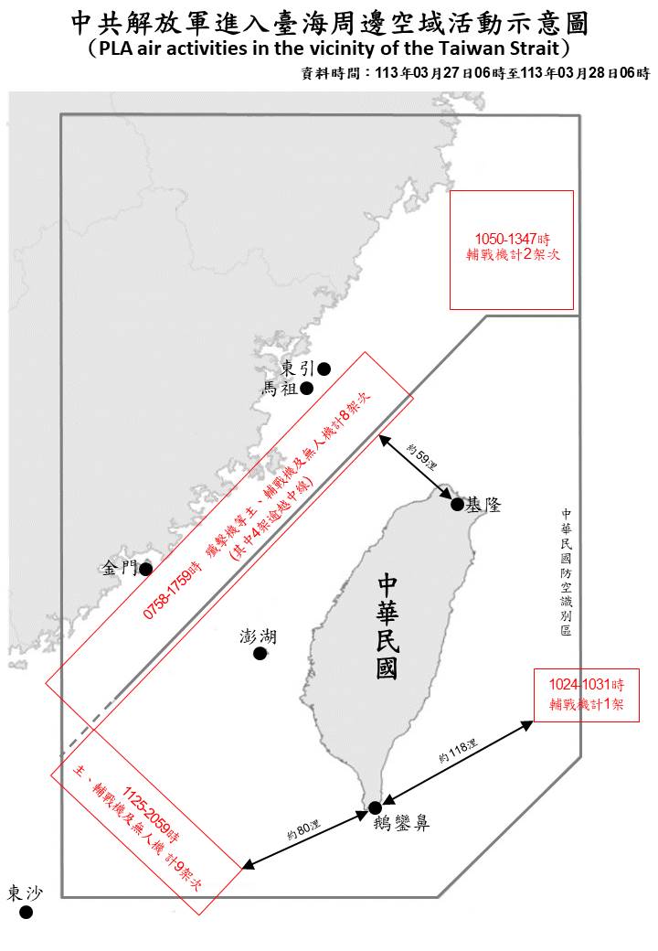 中共解放軍臺海周邊海、空域動態(113年3月28日)
