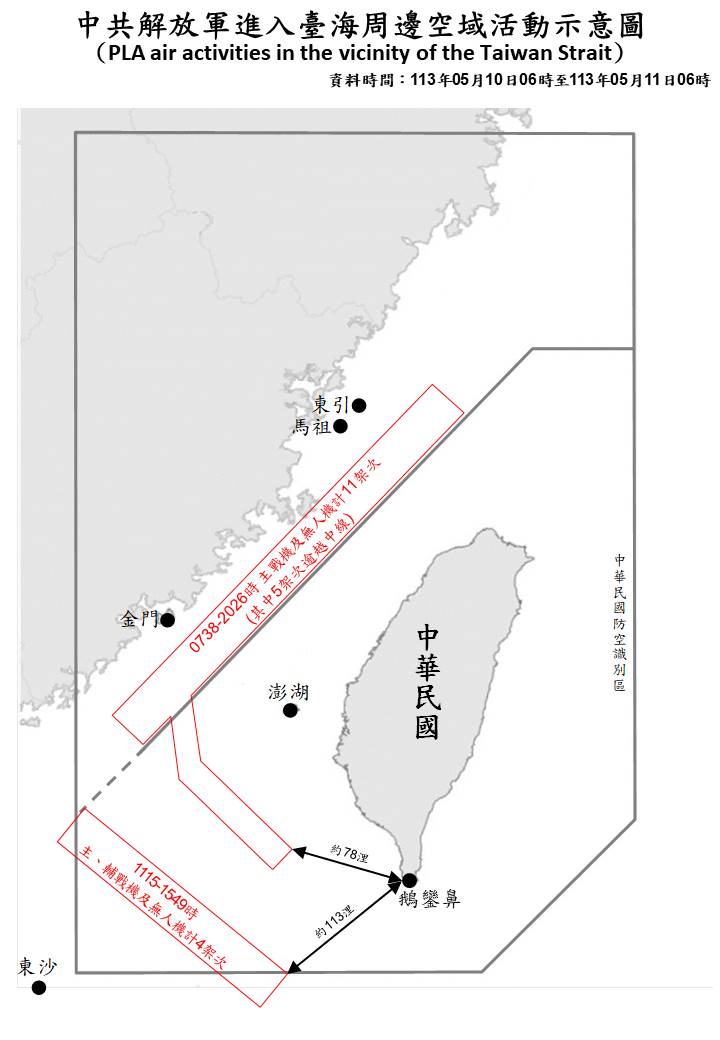 中共解放軍臺海周邊海、空域動態(113年5月11日)