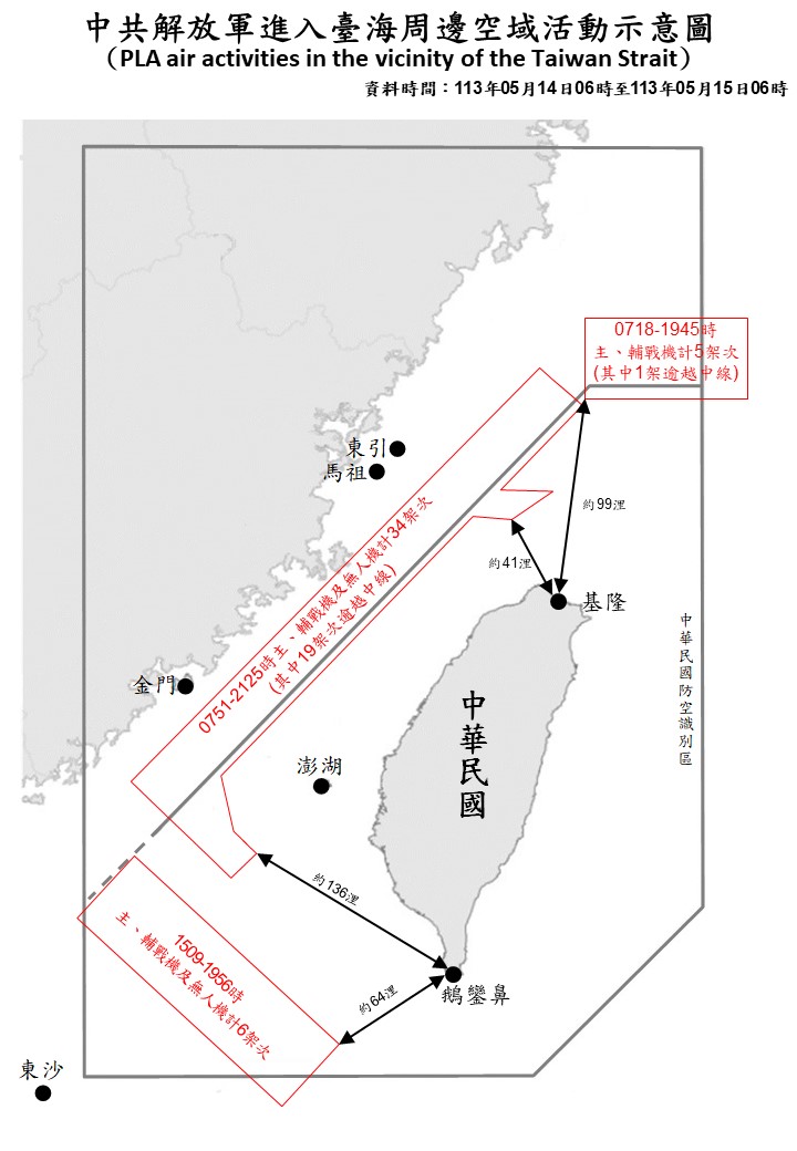 中共解放軍臺海周邊海、空域動態(113年5月15日)