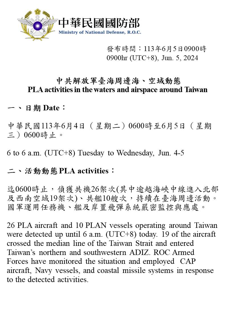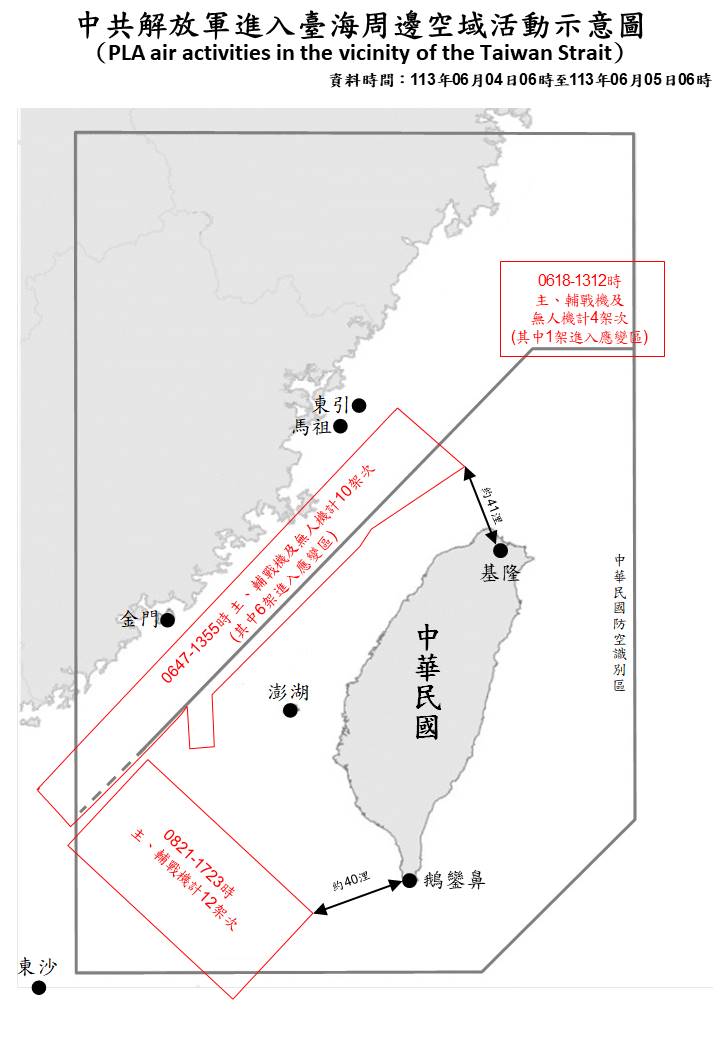 中共解放軍臺海周邊海、空域動態(113年6月5日)