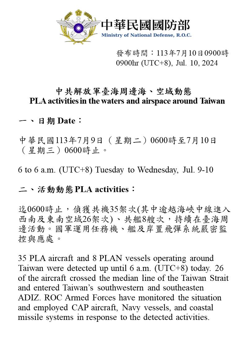 1130710_臺海周邊海、空域活動
