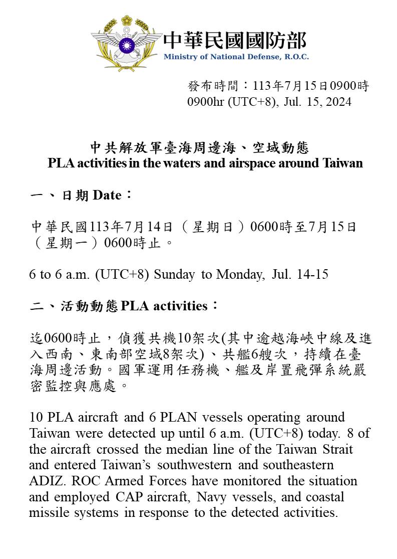 1130715_臺海周邊海、空域活動
