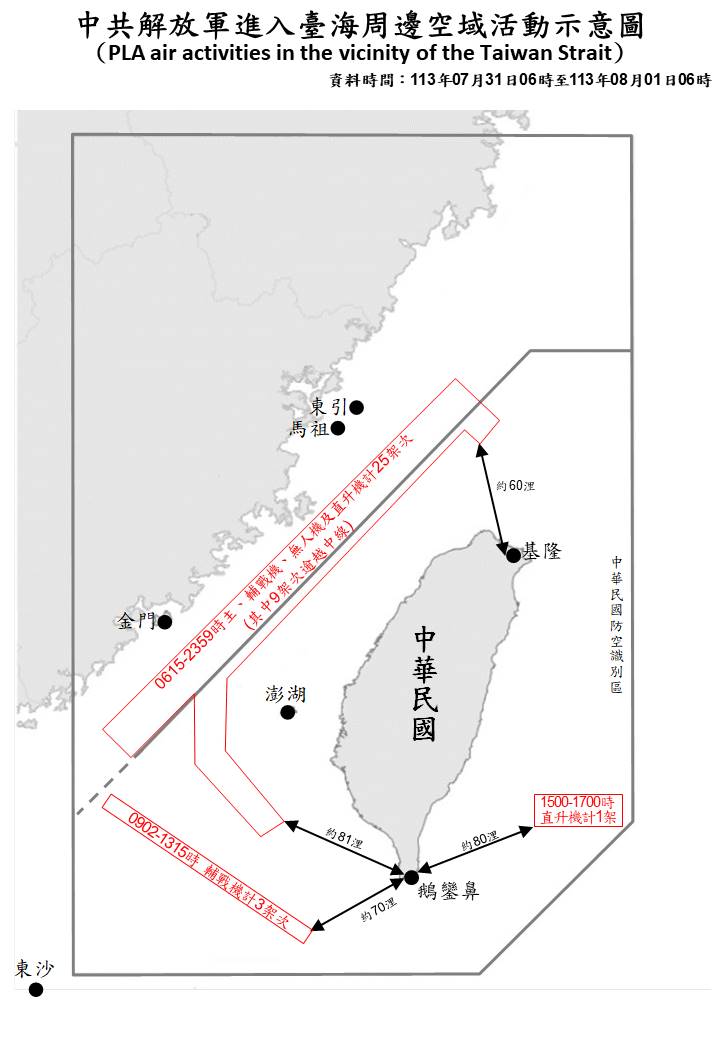 1130801_臺海周邊海、空域活動示意圖
