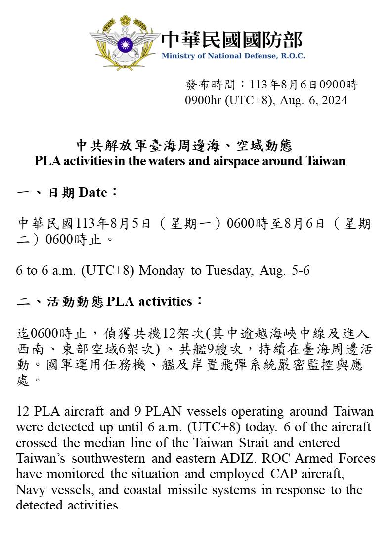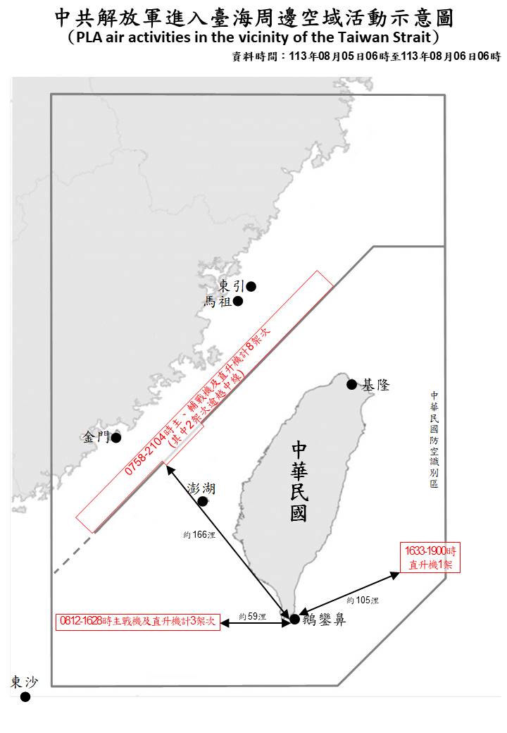 1130806_中共人民解放軍進入臺海周邊活動空域示意圖