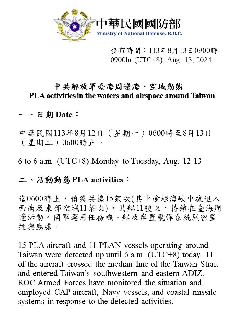 1130813_臺海周邊海、空域活動示意圖