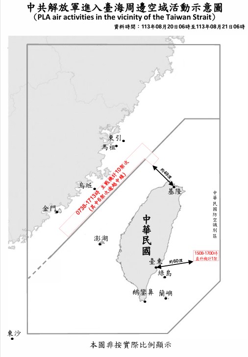 1130821_臺海周邊海、空域活動示意圖