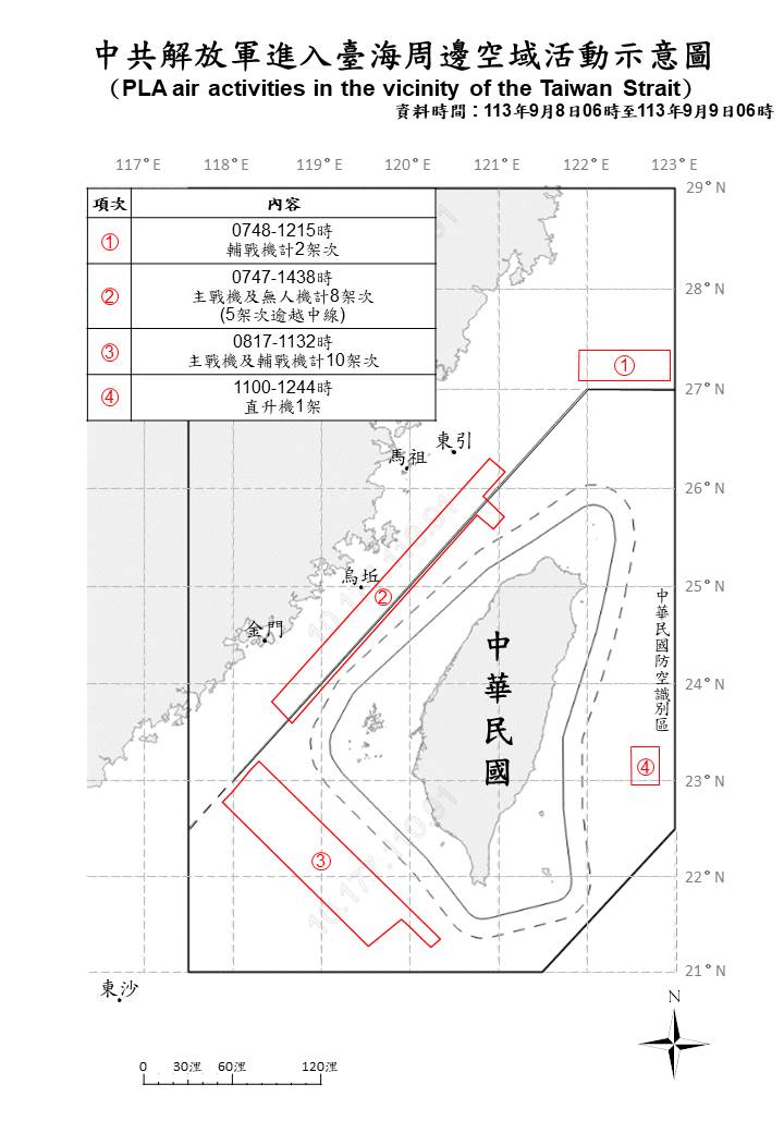 1130909_臺海周邊海、空域活動示意圖