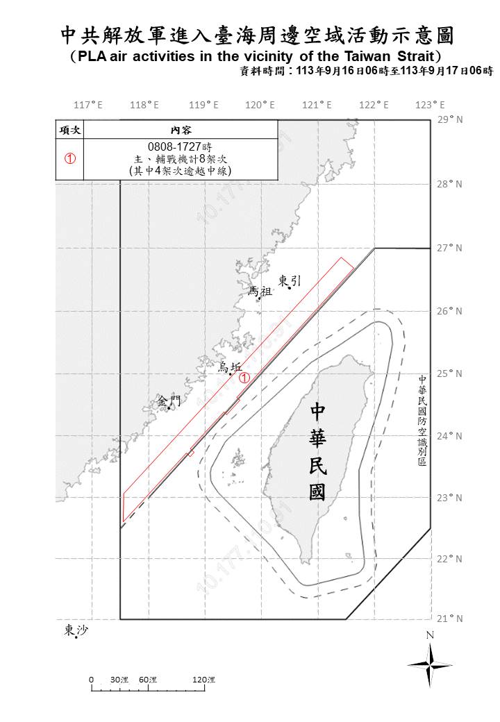 1130917_臺海周邊空域活動示意圖