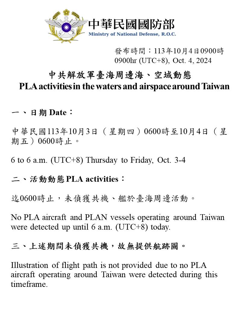 1131004_臺海周邊海、空域活動