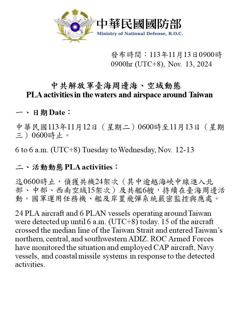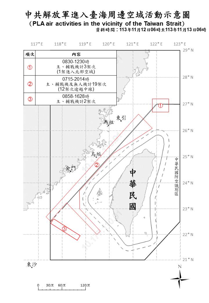 1131113_臺海周邊海、空域活動示意圖