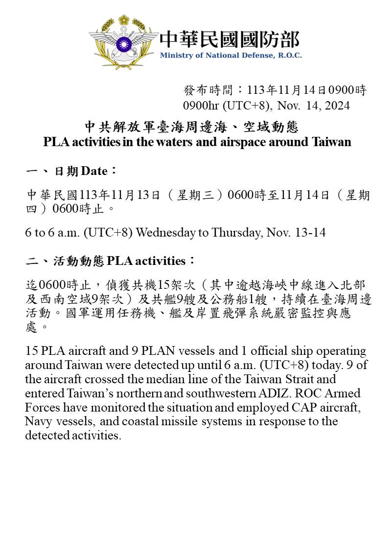 1131114_臺海周邊海、空域活動