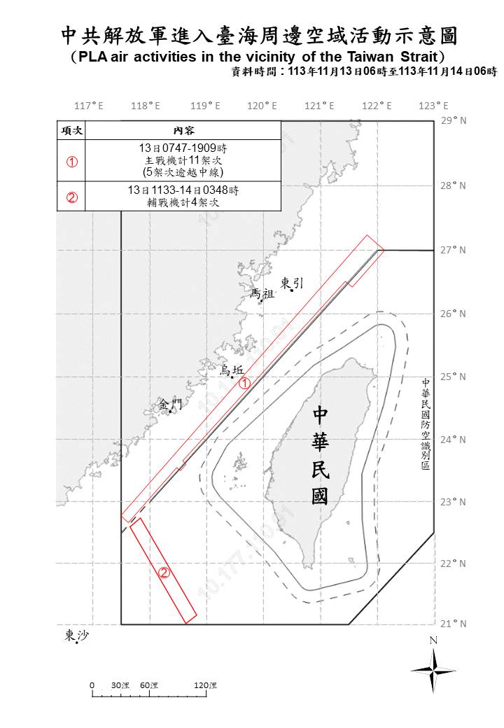 1131114_臺海周邊海、空域活動示意圖