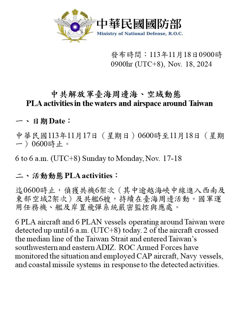 1131118_臺海周邊海、空域活動