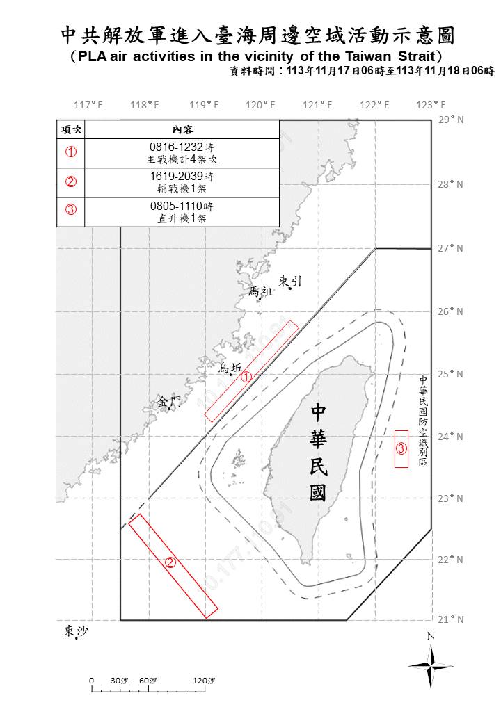 1131118_臺海周邊海、空域活動示意圖